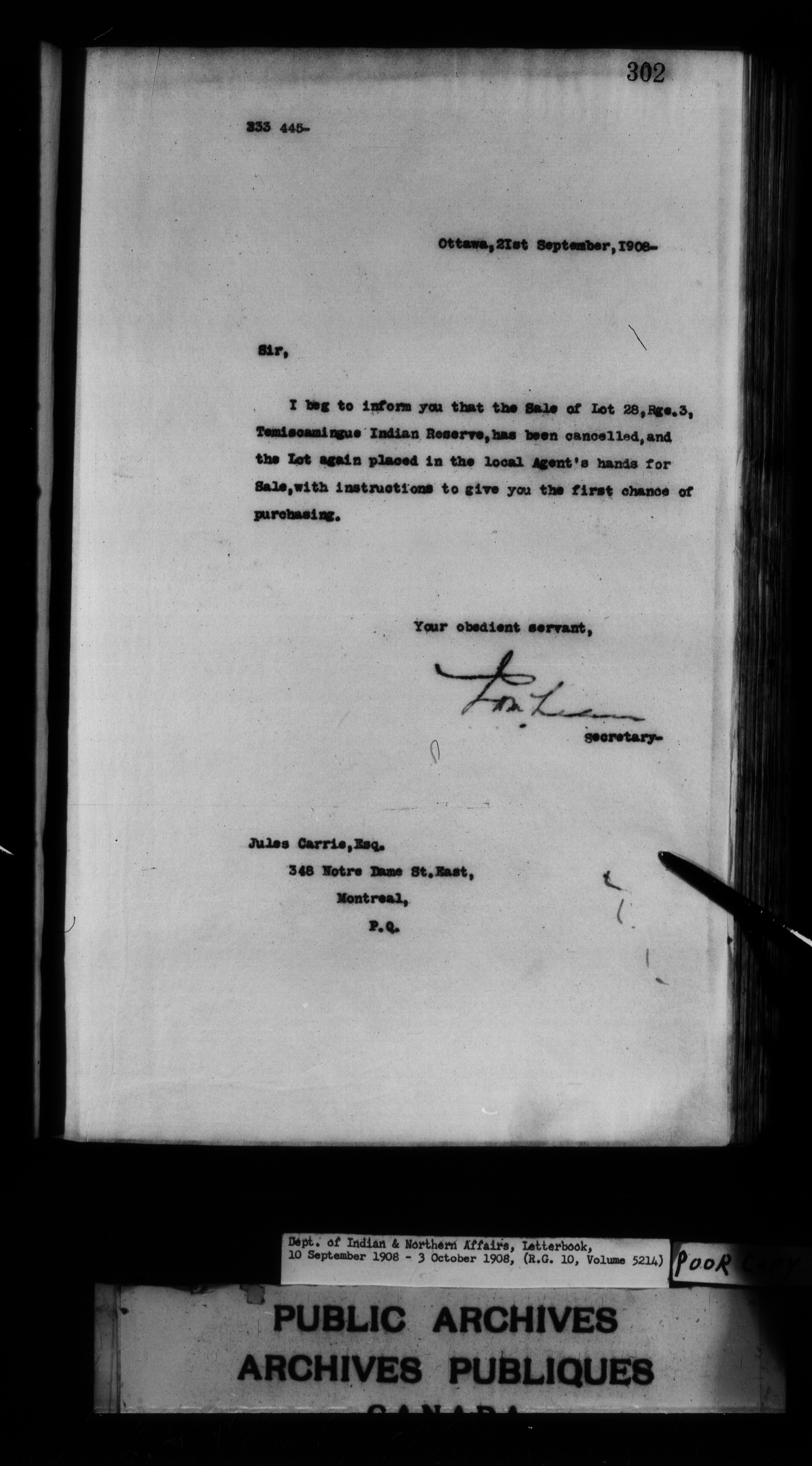 Department of Indian Affairs : Departmental letterbooks : C-7489