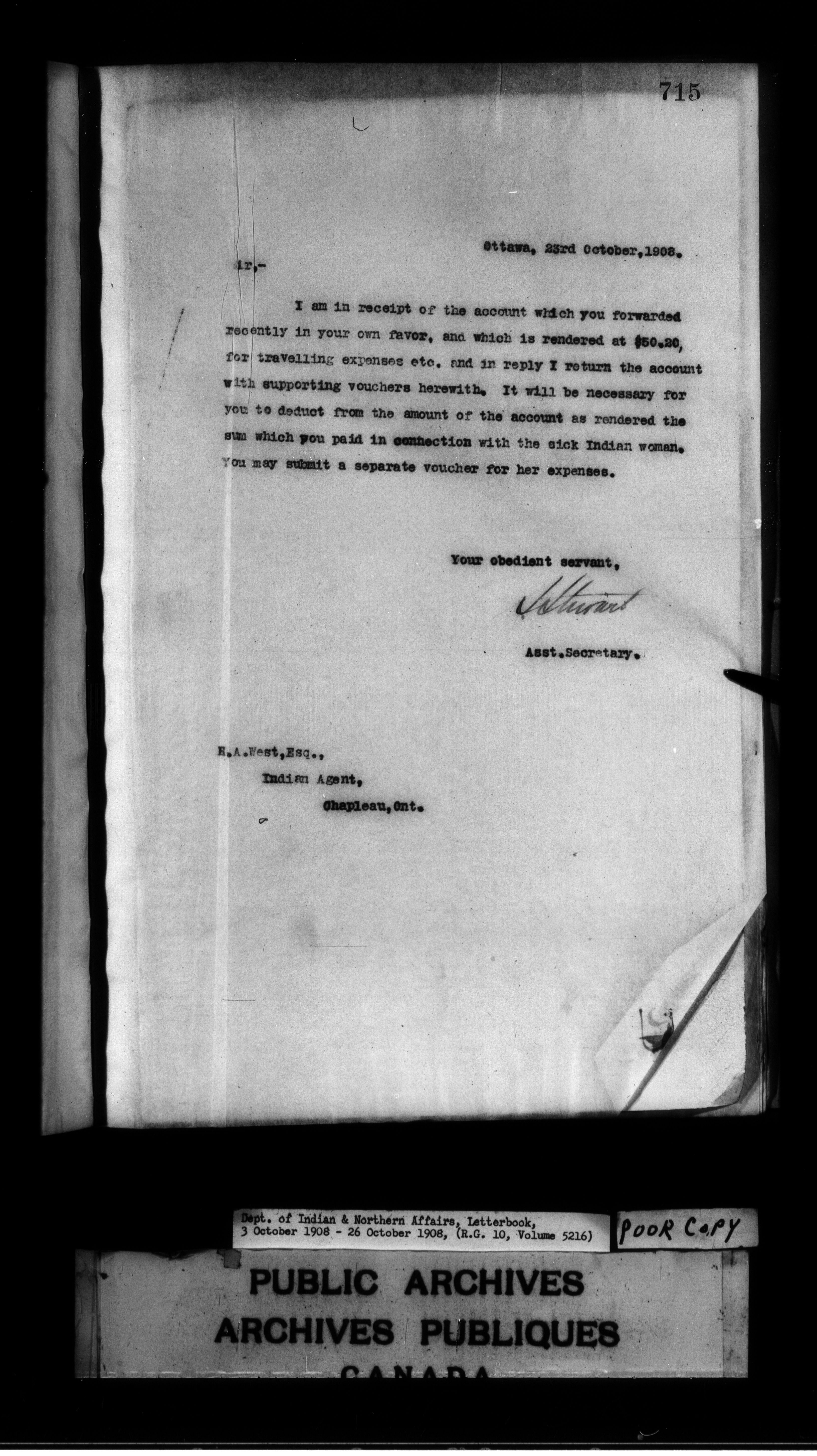 Department of Indian Affairs : Letterbooks of out-going correspondence relating to the administration of Indian Affairs in both eastern and western Canada, 1871-1920 - 7490