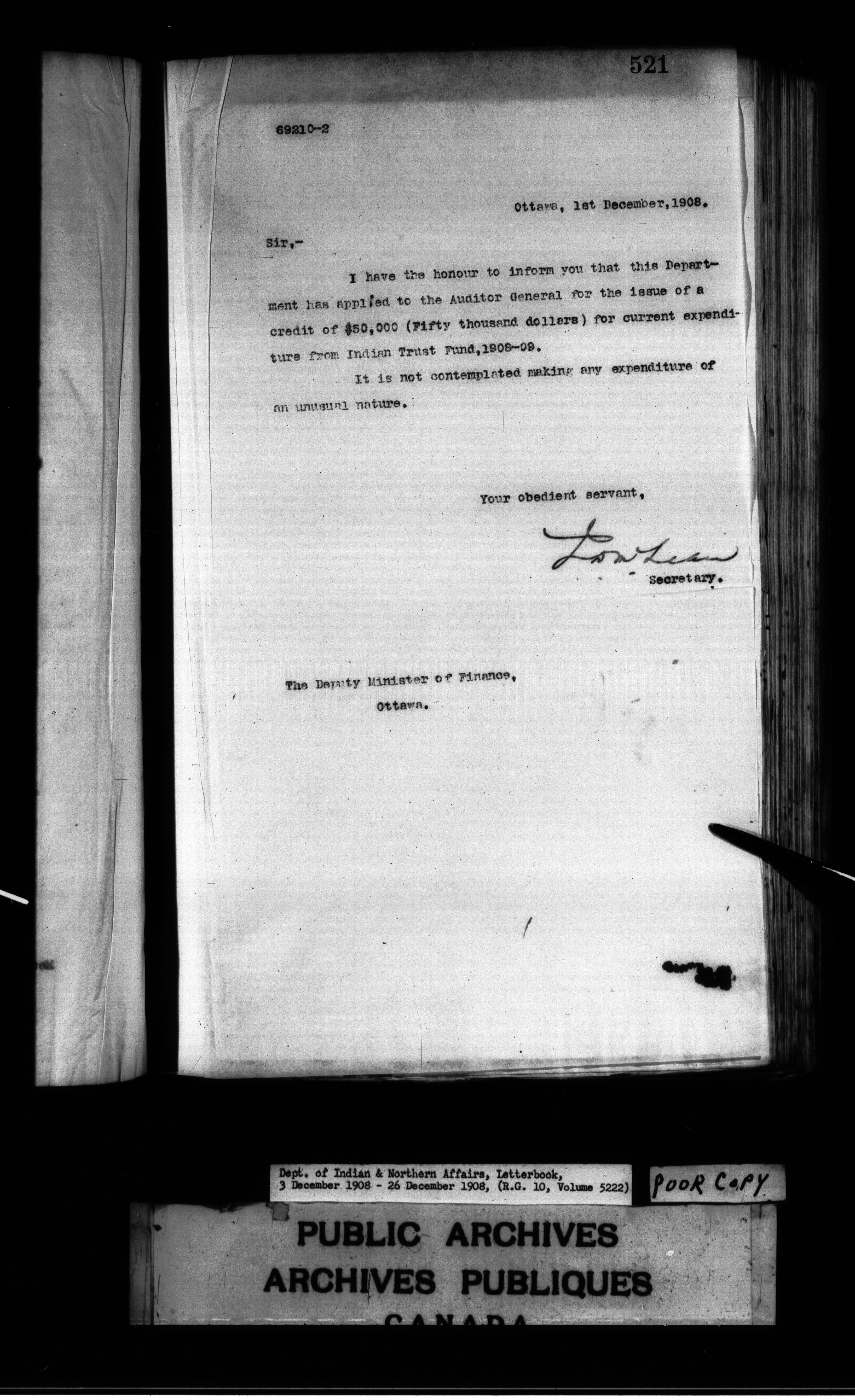 Department of Indian Affairs : Letterbooks of out-going correspondence relating to the administration of Indian Affairs in both eastern and western Canada, 1871-1920 - 7491