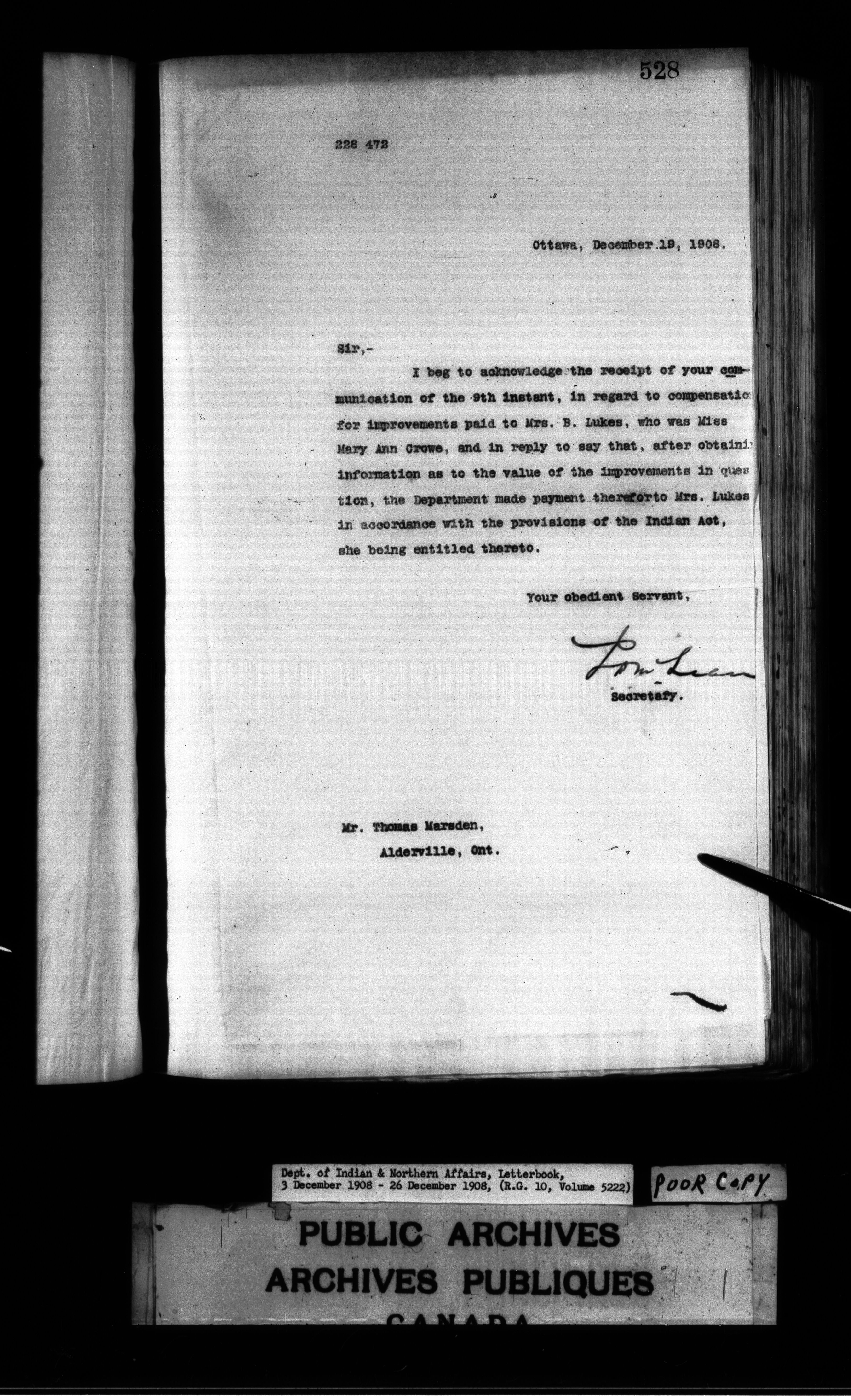 Department of Indian Affairs : Letterbooks of out-going correspondence relating to the administration of Indian Affairs in both eastern and western Canada, 1871-1920 - 7491