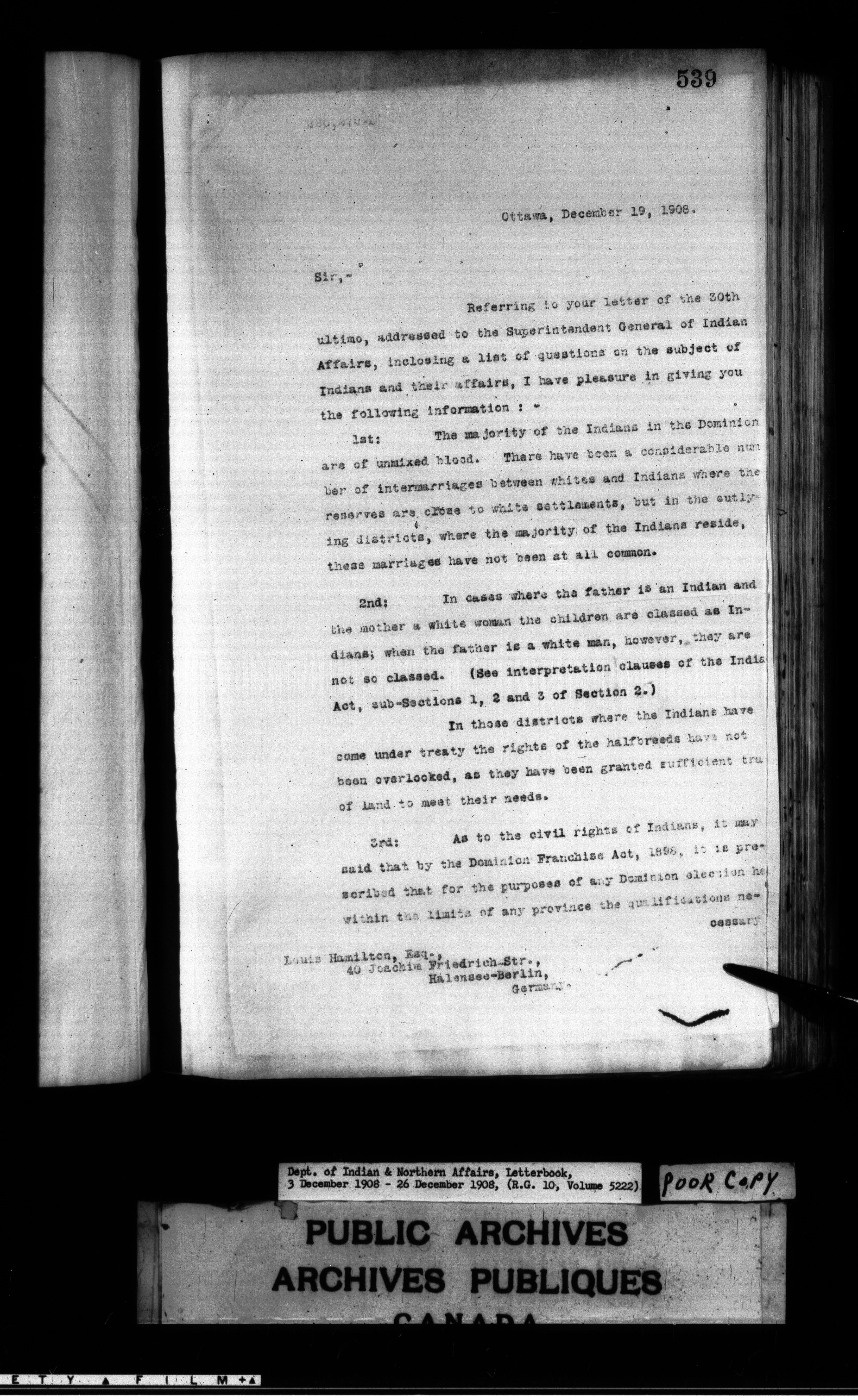 Department of Indian Affairs : Letterbooks of out-going correspondence relating to the administration of Indian Affairs in both eastern and western Canada, 1871-1920 - 7491