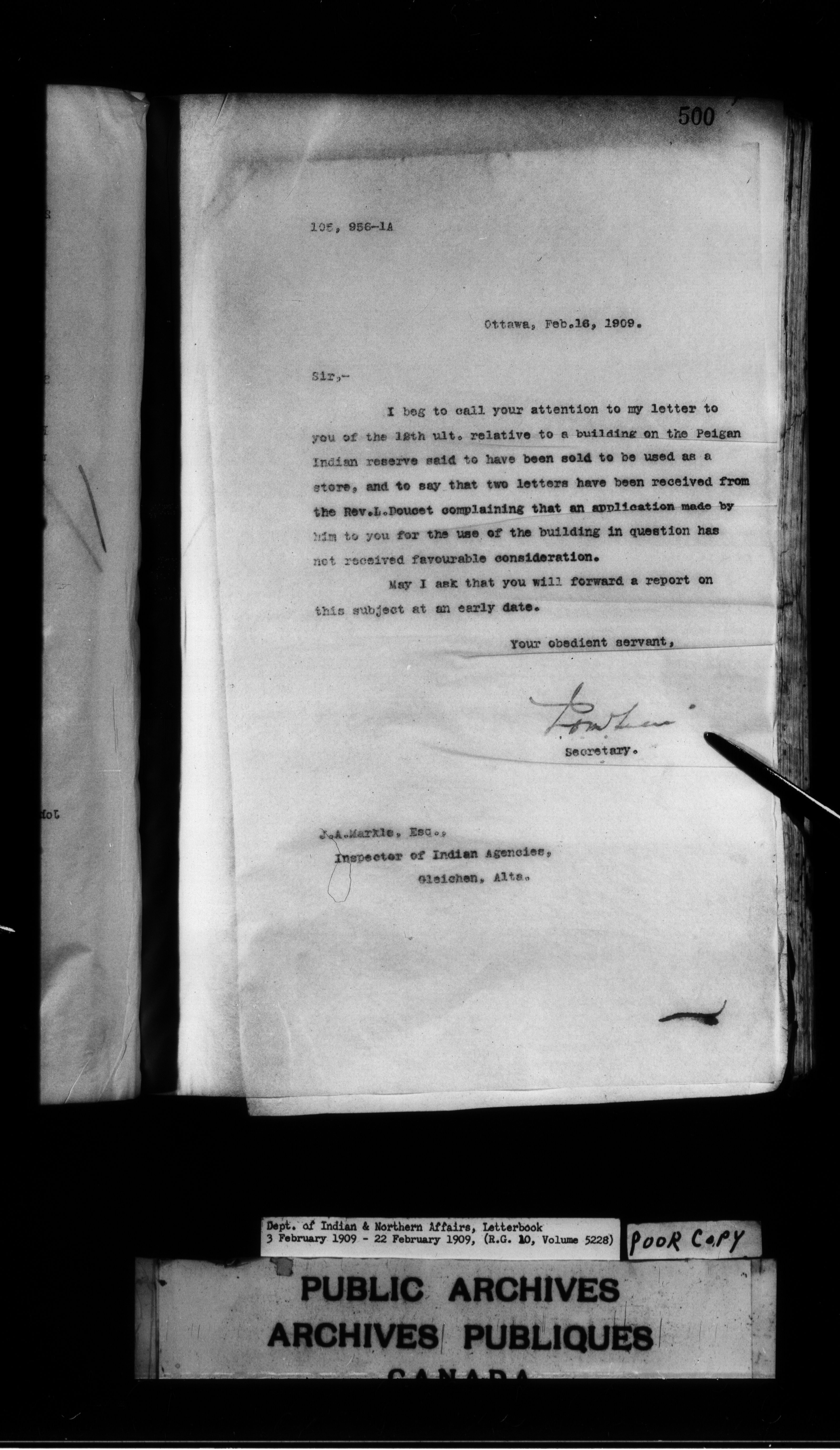 Department of Indian Affairs : Letterbooks of out-going correspondence relating to the administration of Indian Affairs in both eastern and western Canada, 1871-1920 - 7493