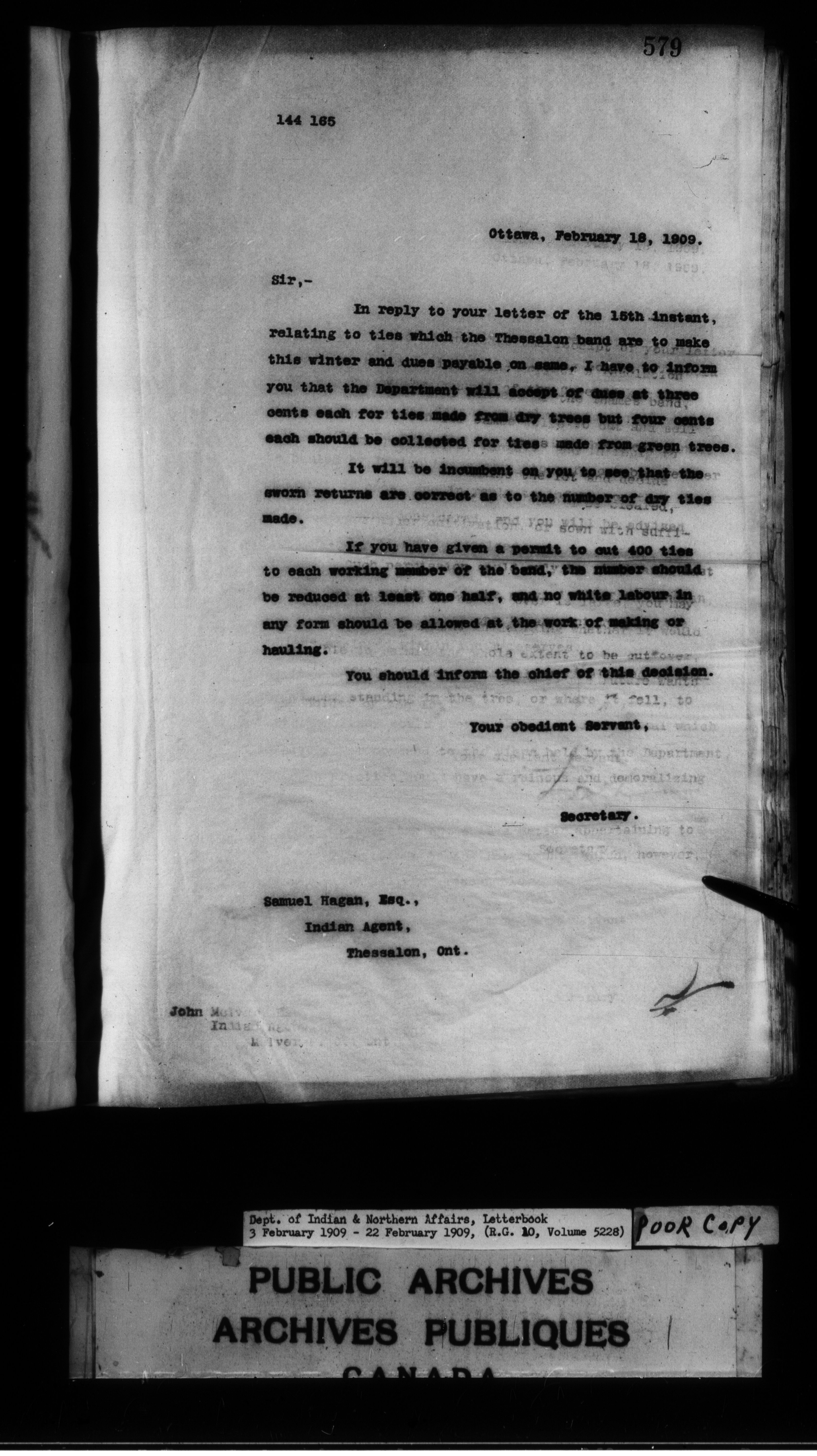 Department of Indian Affairs : Letterbooks of out-going correspondence relating to the administration of Indian Affairs in both eastern and western Canada, 1871-1920 - 7494