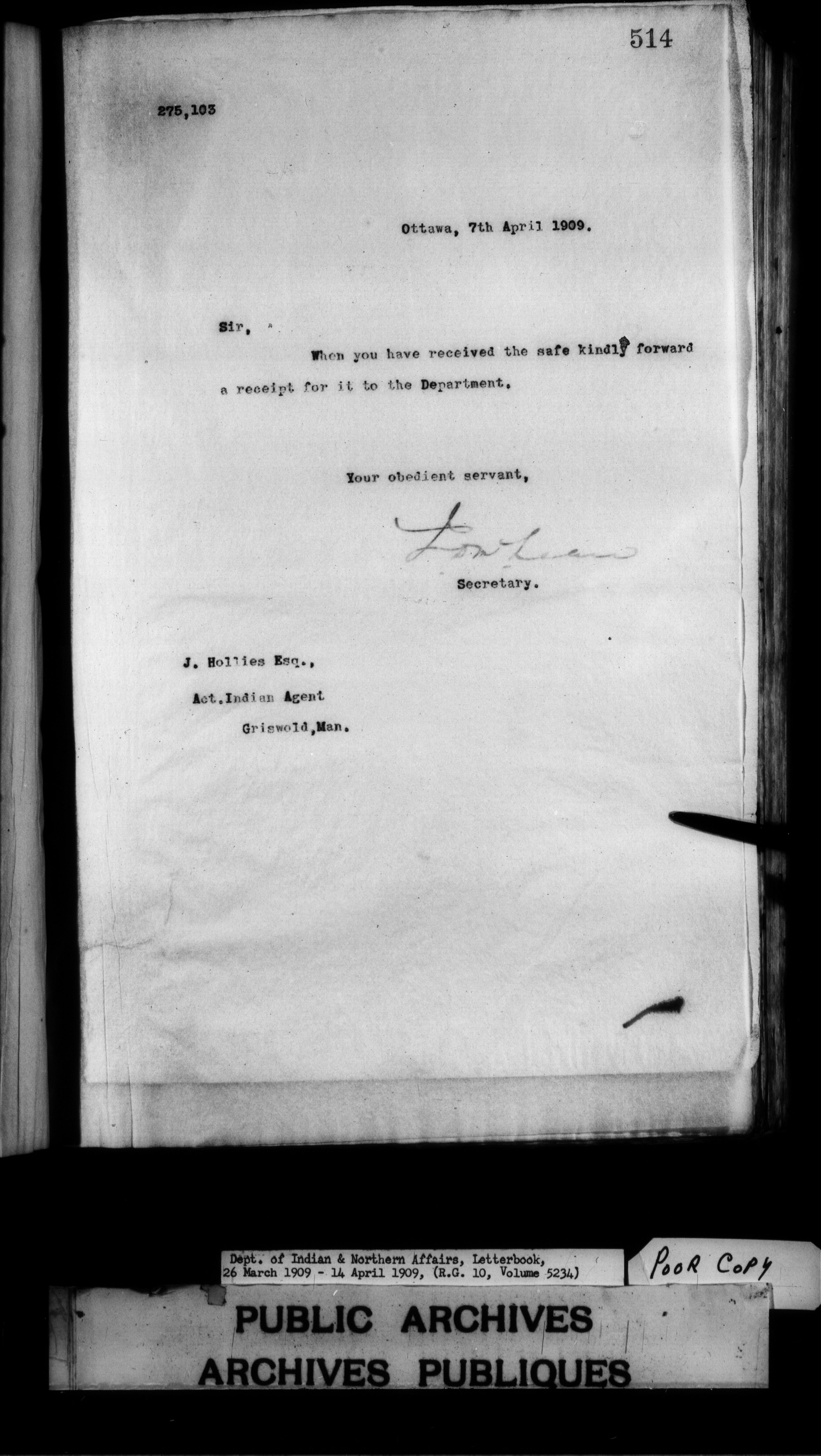 Department of Indian Affairs : Letterbooks of out-going correspondence relating to the administration of Indian Affairs in both eastern and western Canada, 1871-1920 - 7496