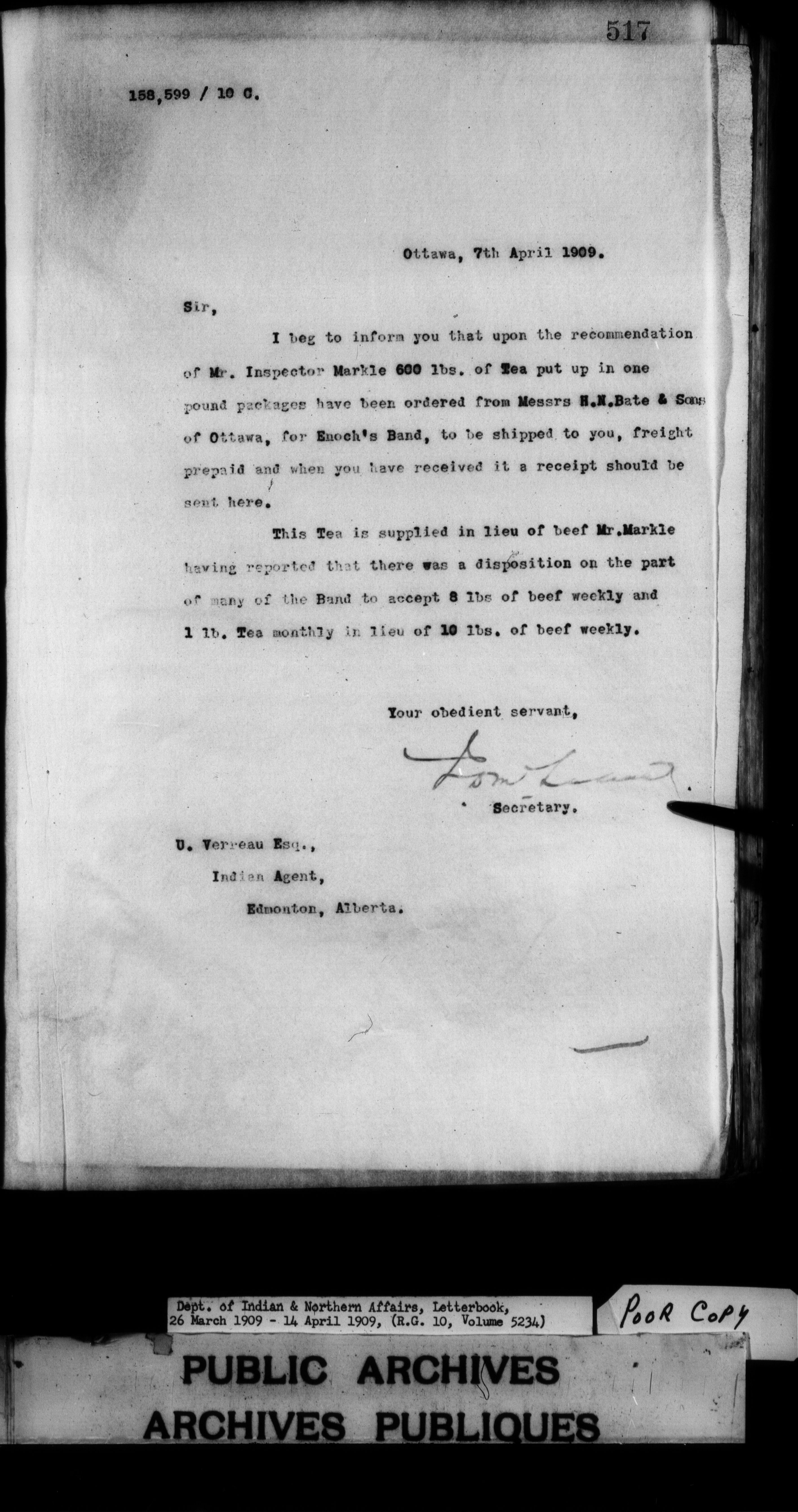 Department of Indian Affairs : Letterbooks of out-going correspondence relating to the administration of Indian Affairs in both eastern and western Canada, 1871-1920 - 7496