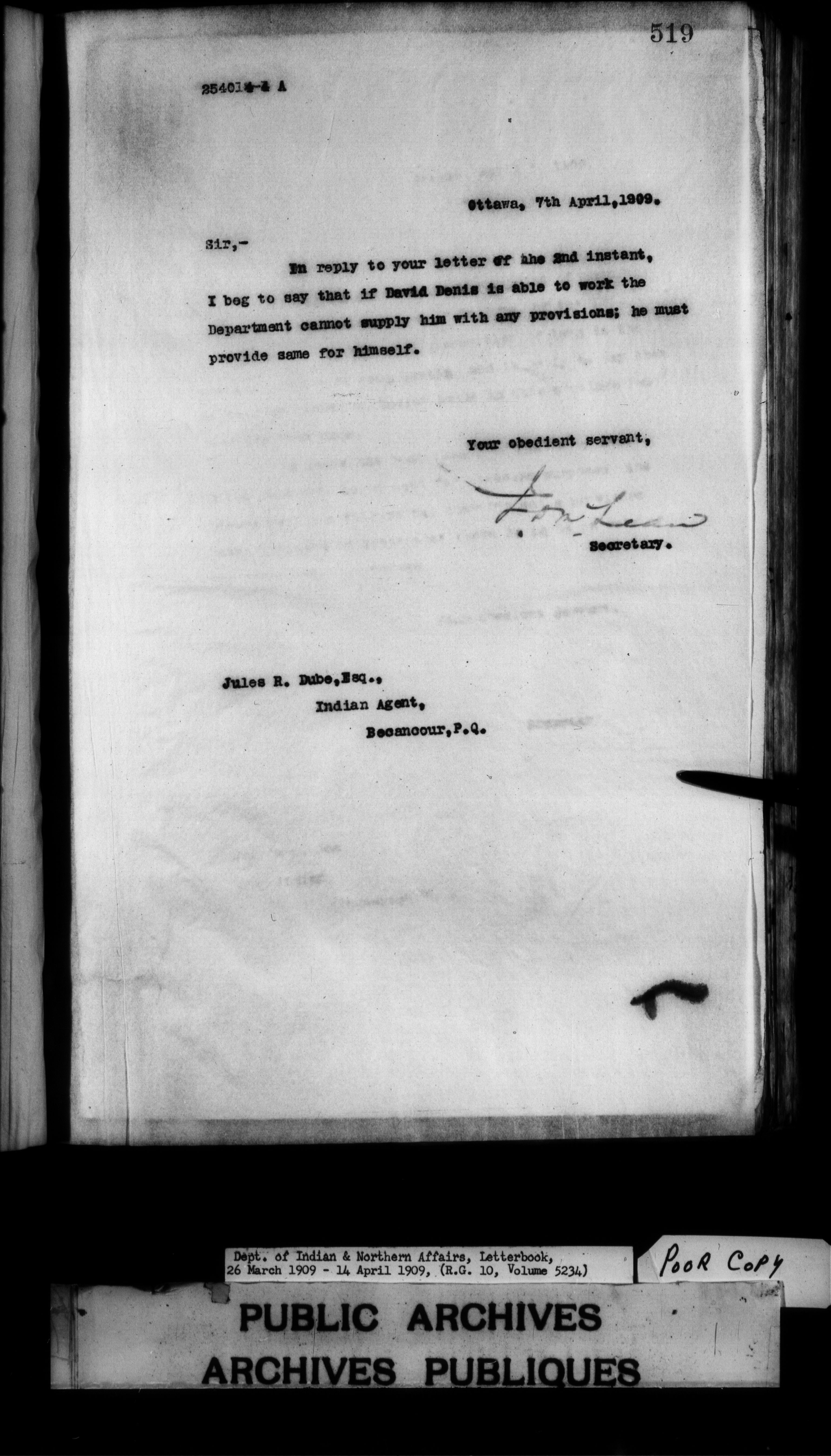 Department of Indian Affairs : Letterbooks of out-going correspondence relating to the administration of Indian Affairs in both eastern and western Canada, 1871-1920 - 7496