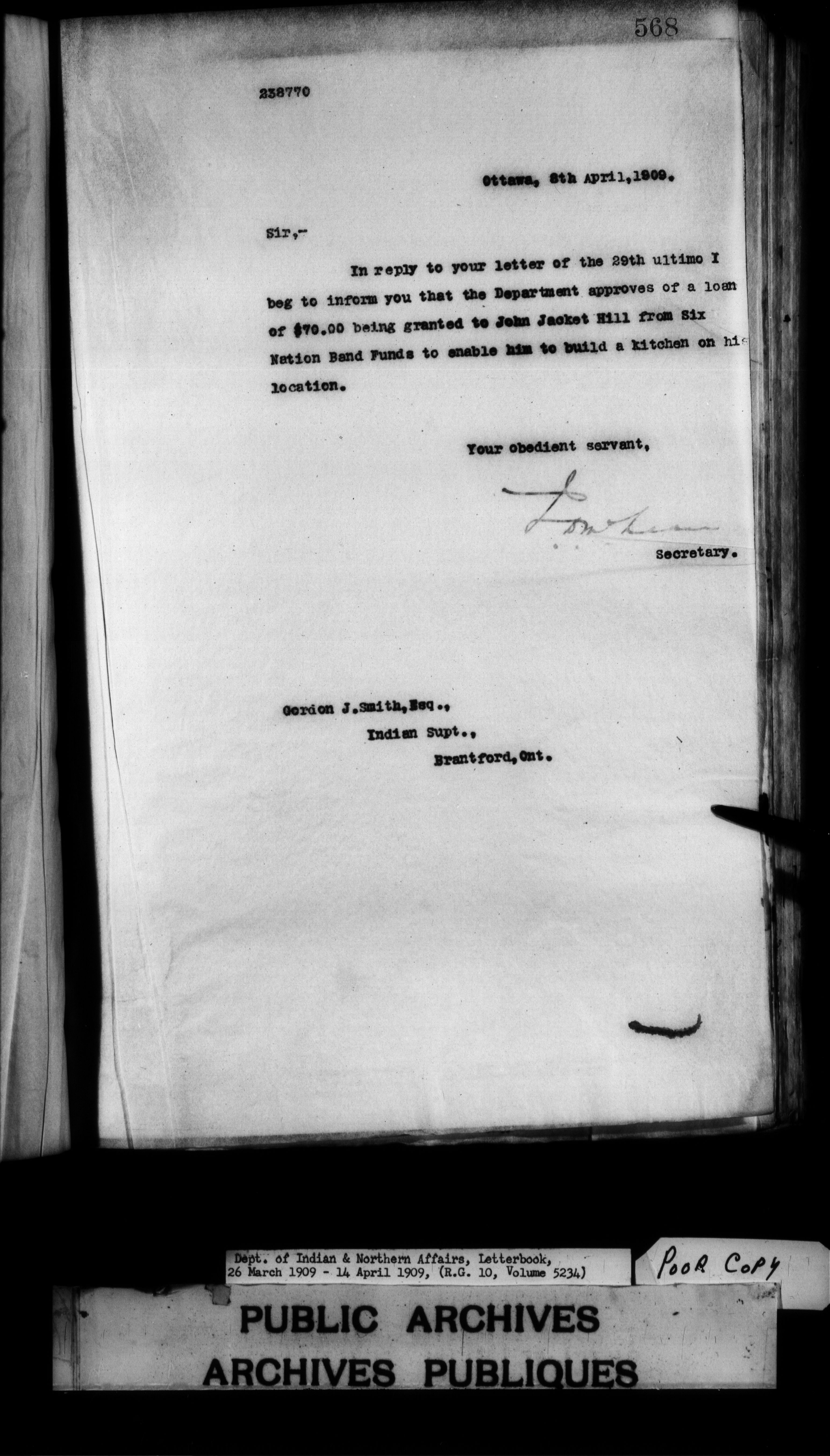 Department of Indian Affairs : Letterbooks of out-going correspondence relating to the administration of Indian Affairs in both eastern and western Canada, 1871-1920 - 7496