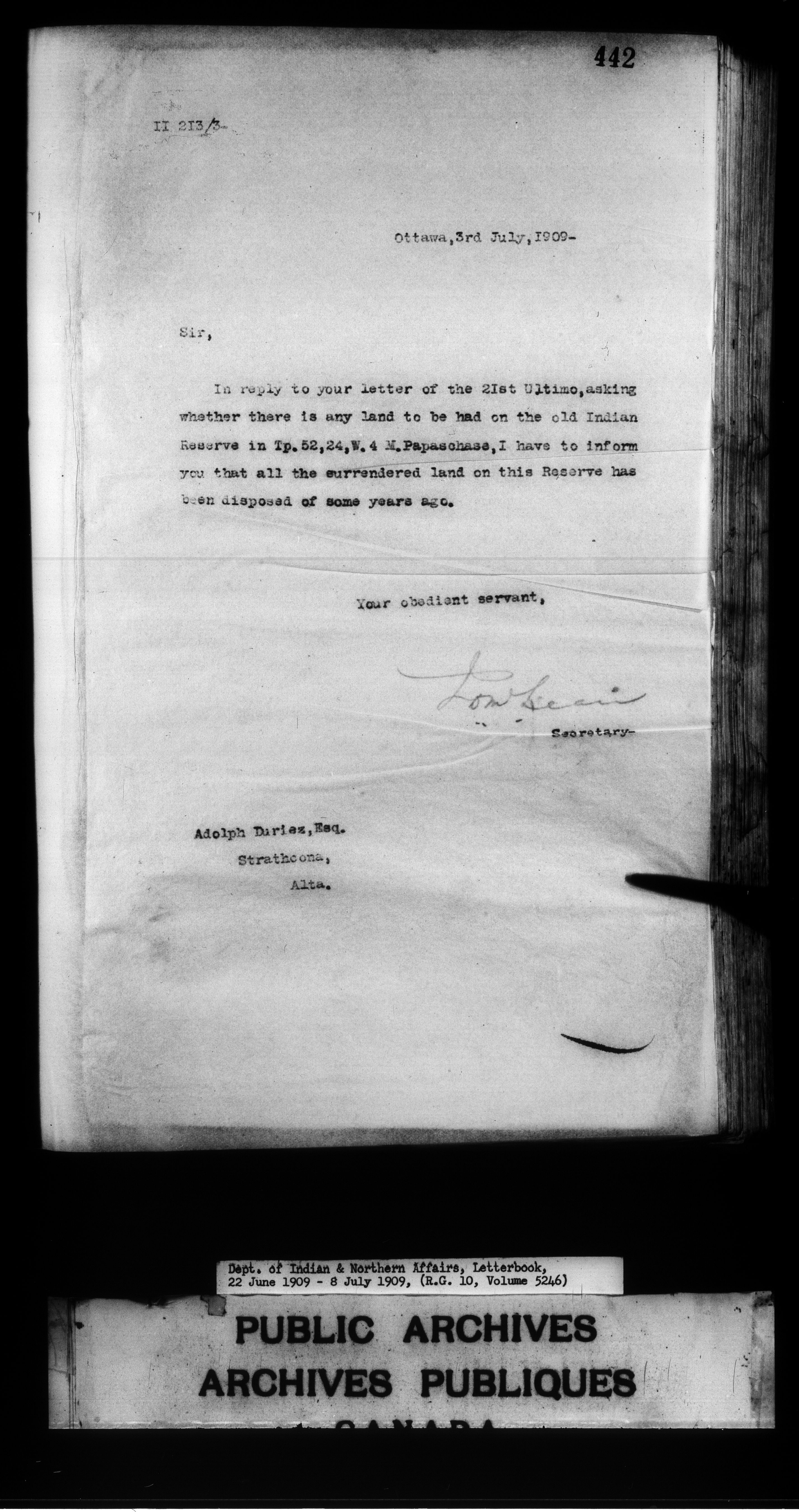 Department of Indian Affairs : Letterbooks of out-going correspondence relating to the administration of Indian Affairs in both eastern and western Canada, 1871-1920 - 7500