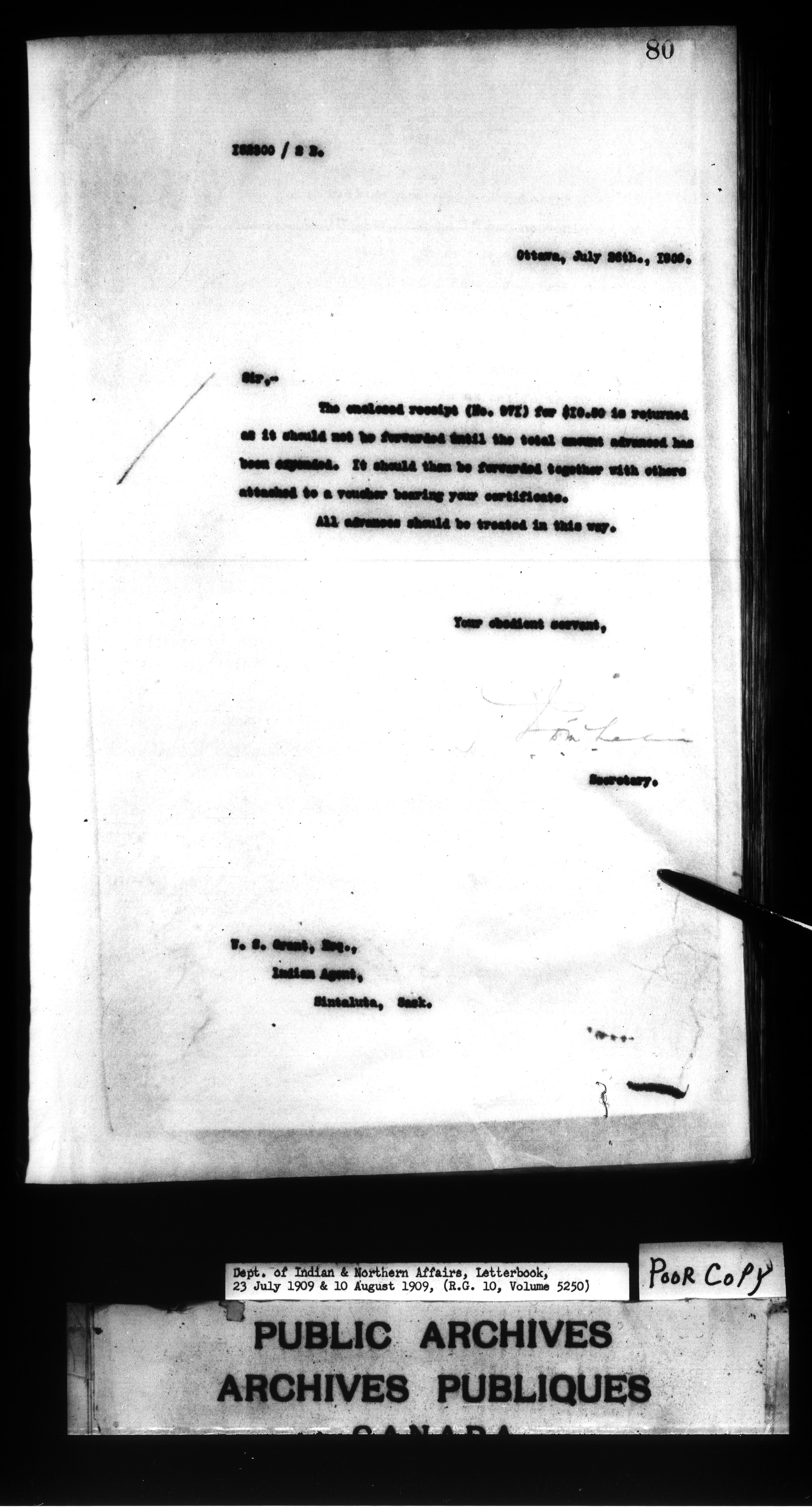 Department of Indian Affairs : Letterbooks of out-going correspondence relating to the administration of Indian Affairs in both eastern and western Canada, 1871-1920 - 7501