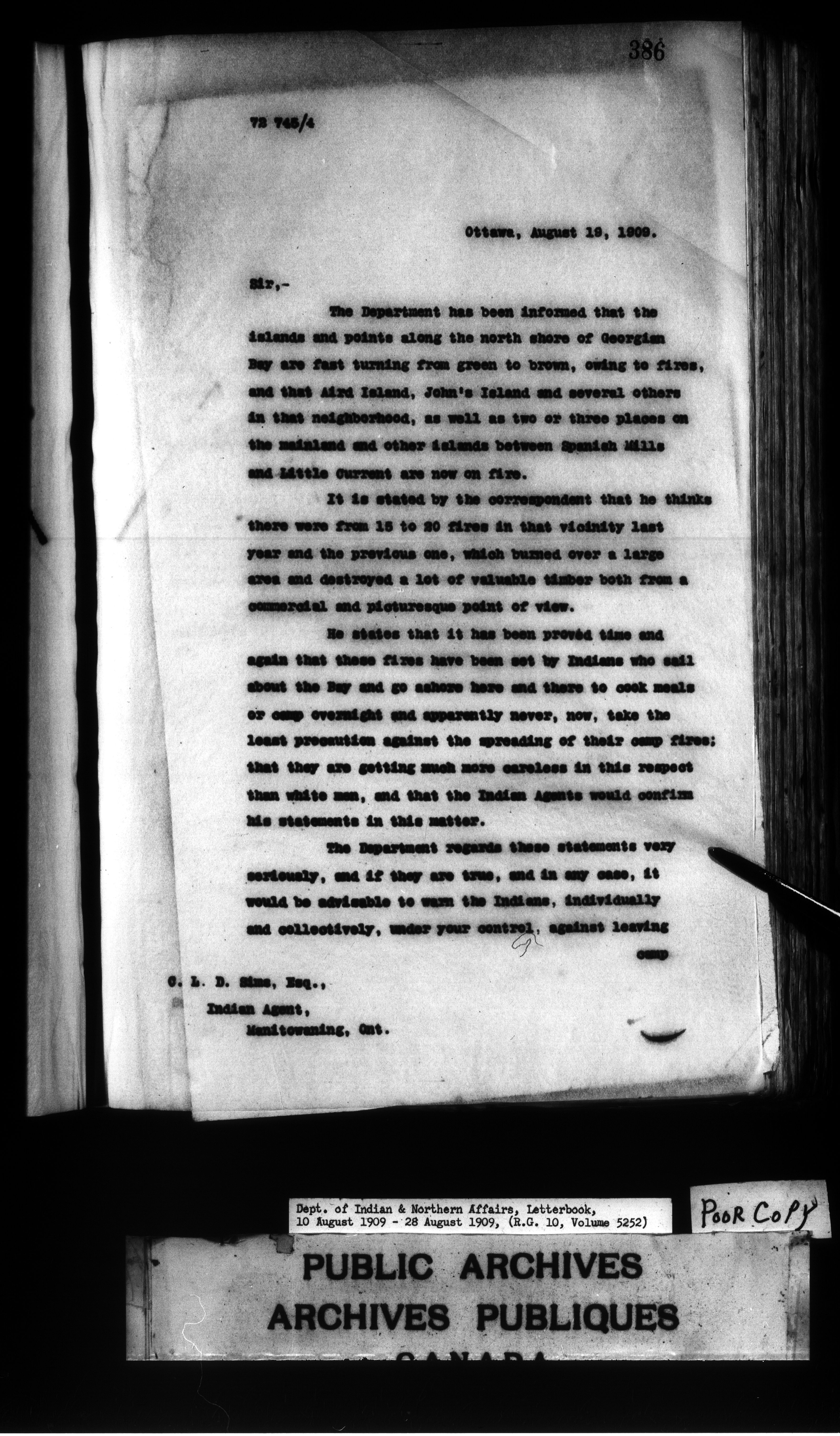 Department of Indian Affairs : Letterbooks of out-going correspondence relating to the administration of Indian Affairs in both eastern and western Canada, 1871-1920 - 7501