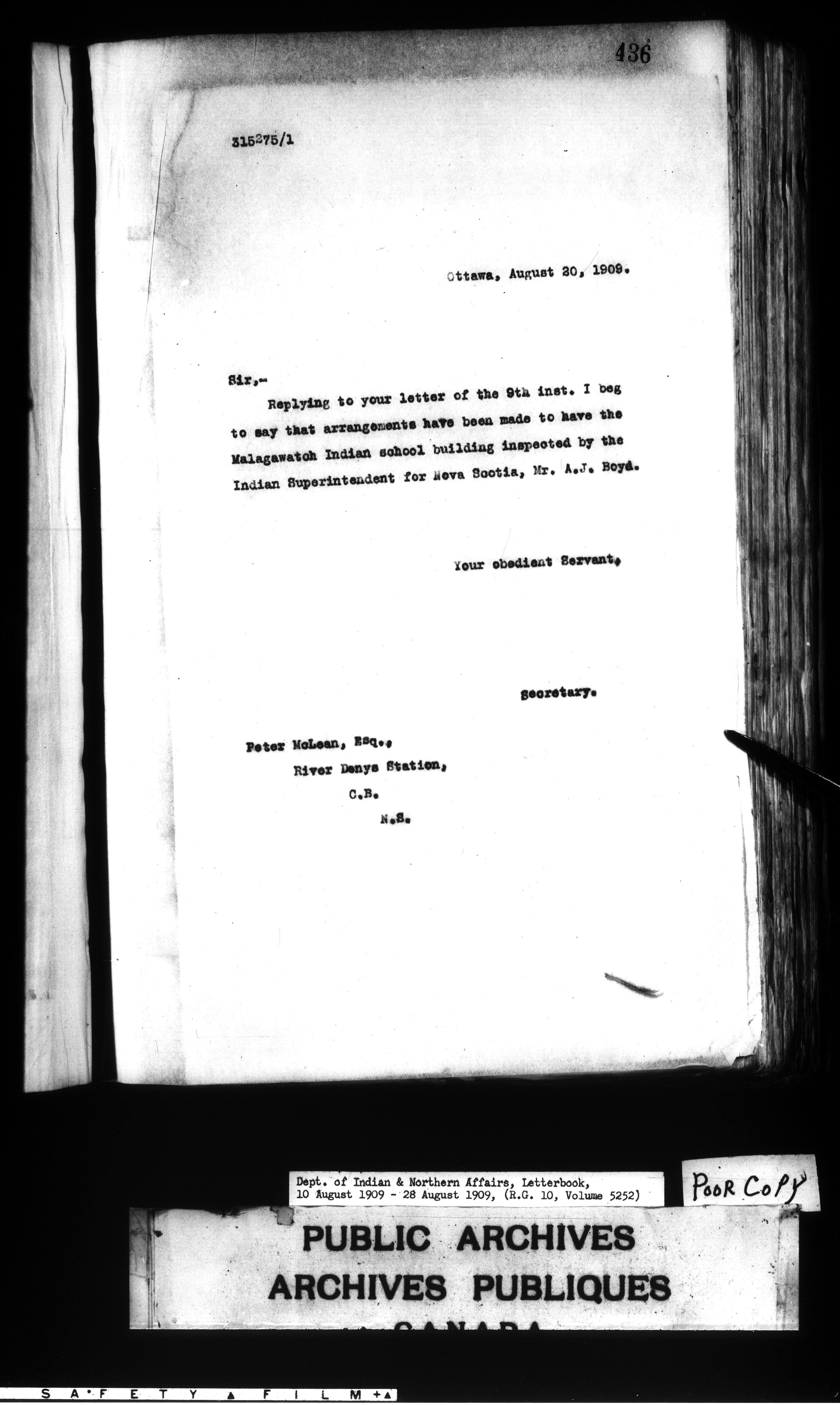 Department of Indian Affairs : Letterbooks of out-going correspondence relating to the administration of Indian Affairs in both eastern and western Canada, 1871-1920 - 7501