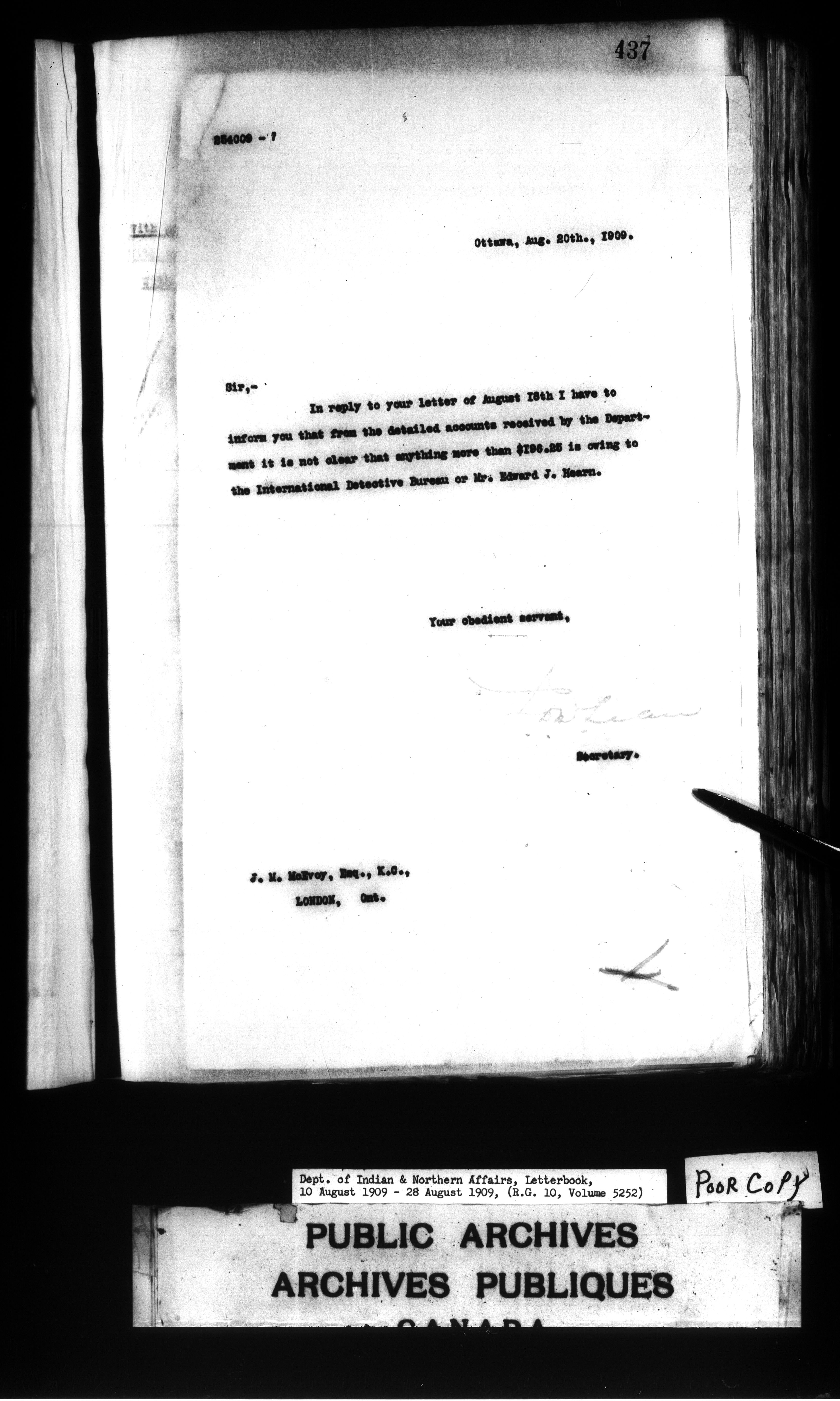 Department of Indian Affairs : Letterbooks of out-going correspondence relating to the administration of Indian Affairs in both eastern and western Canada, 1871-1920 - 7501