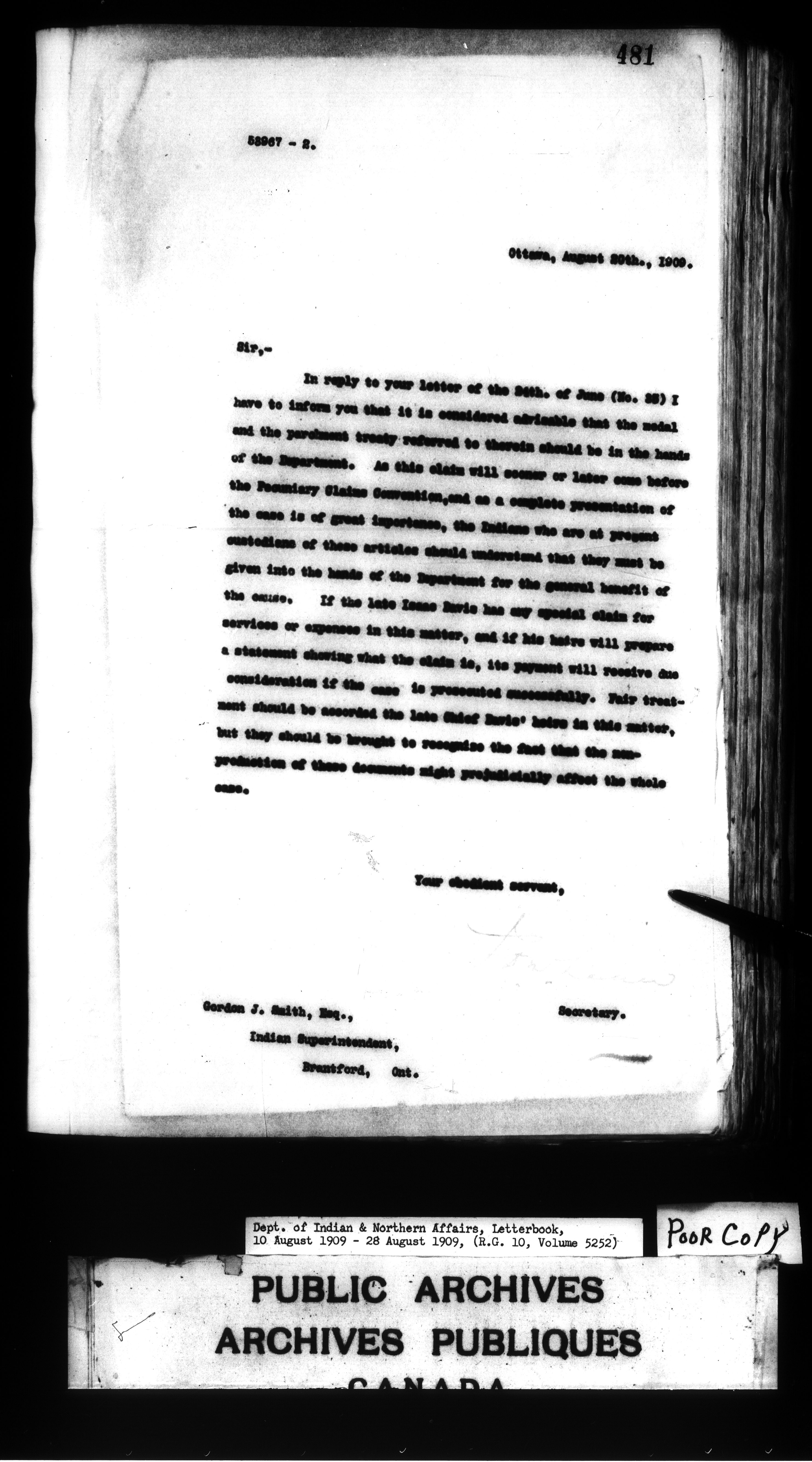 Department of Indian Affairs : Departmental letterbooks : C-7502