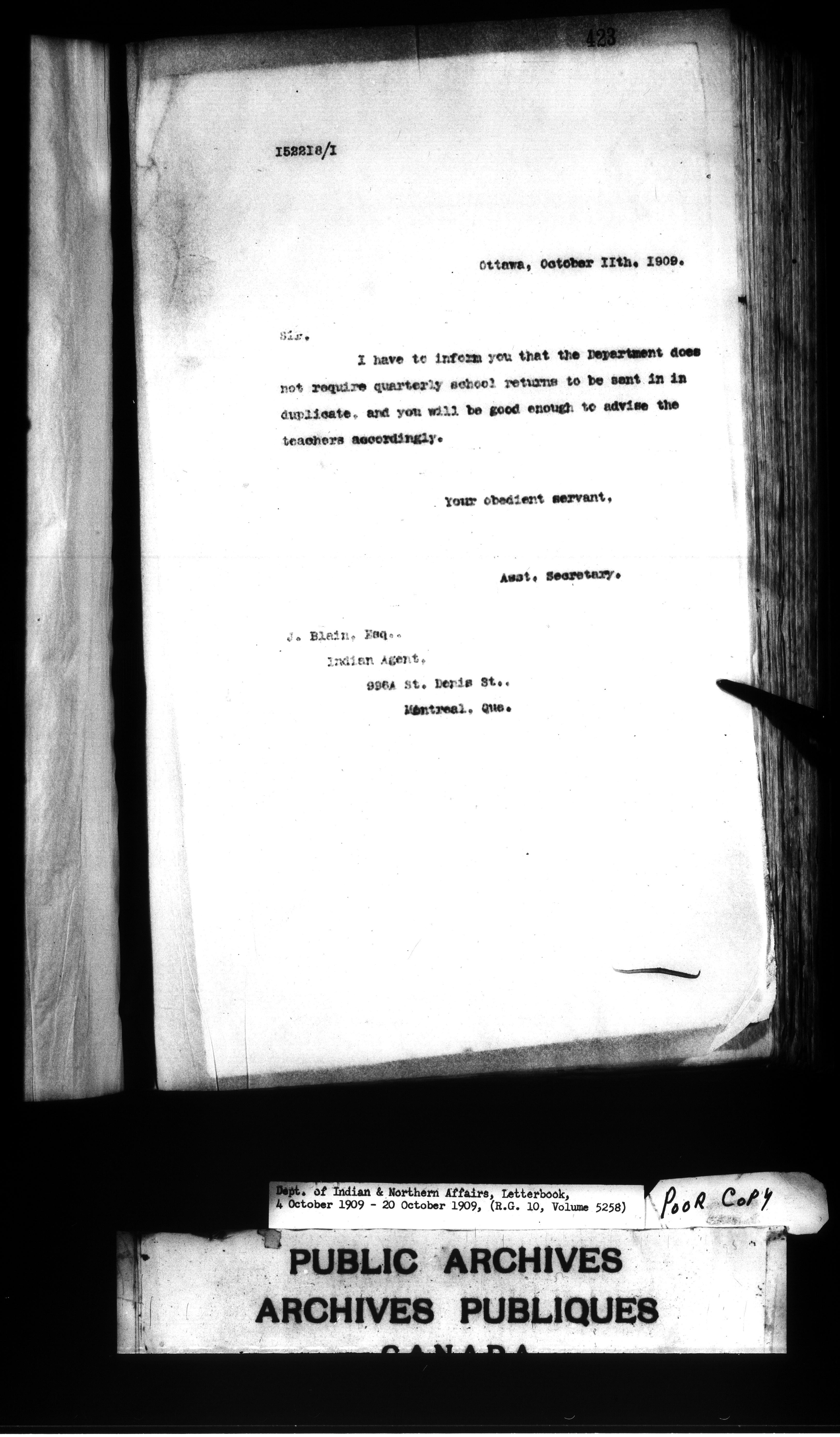 Department of Indian Affairs : Departmental letterbooks : C-7503
