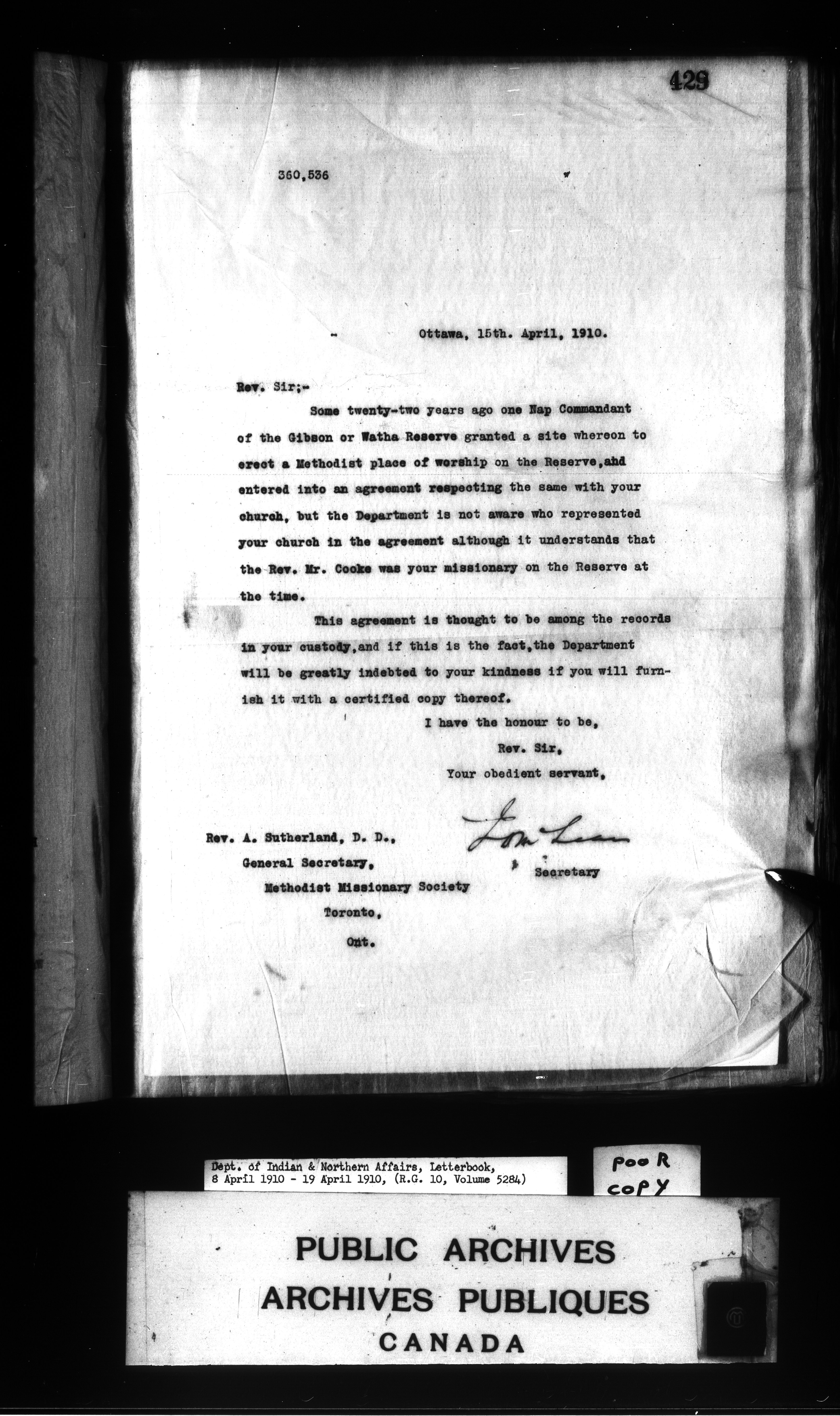 Department of Indian Affairs : Letterbooks of out-going correspondence relating to the administration of Indian Affairs in both eastern and western Canada, 1871-1920 - 7513