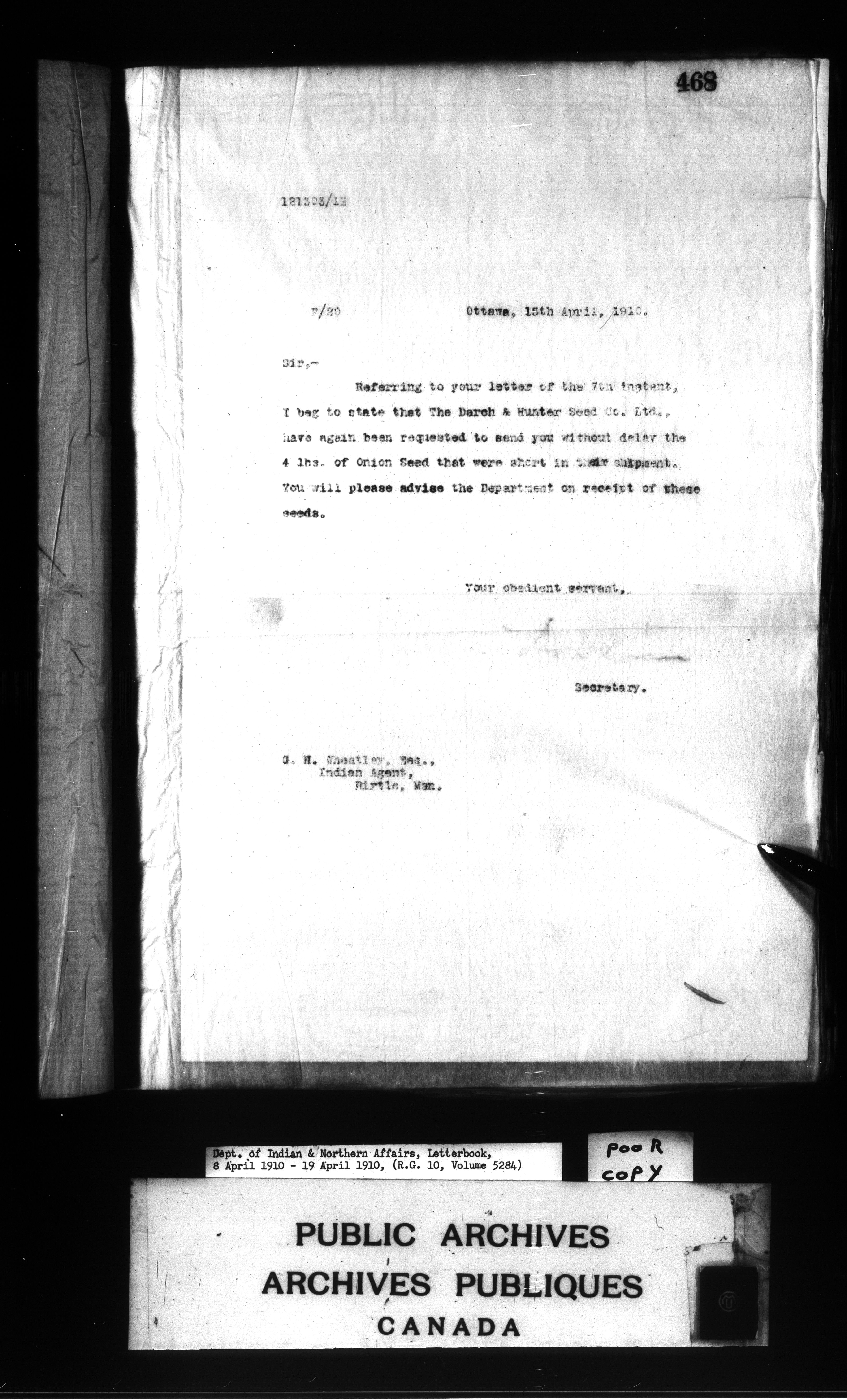 Department of Indian Affairs : Letterbooks of out-going correspondence relating to the administration of Indian Affairs in both eastern and western Canada, 1871-1920 - 7513