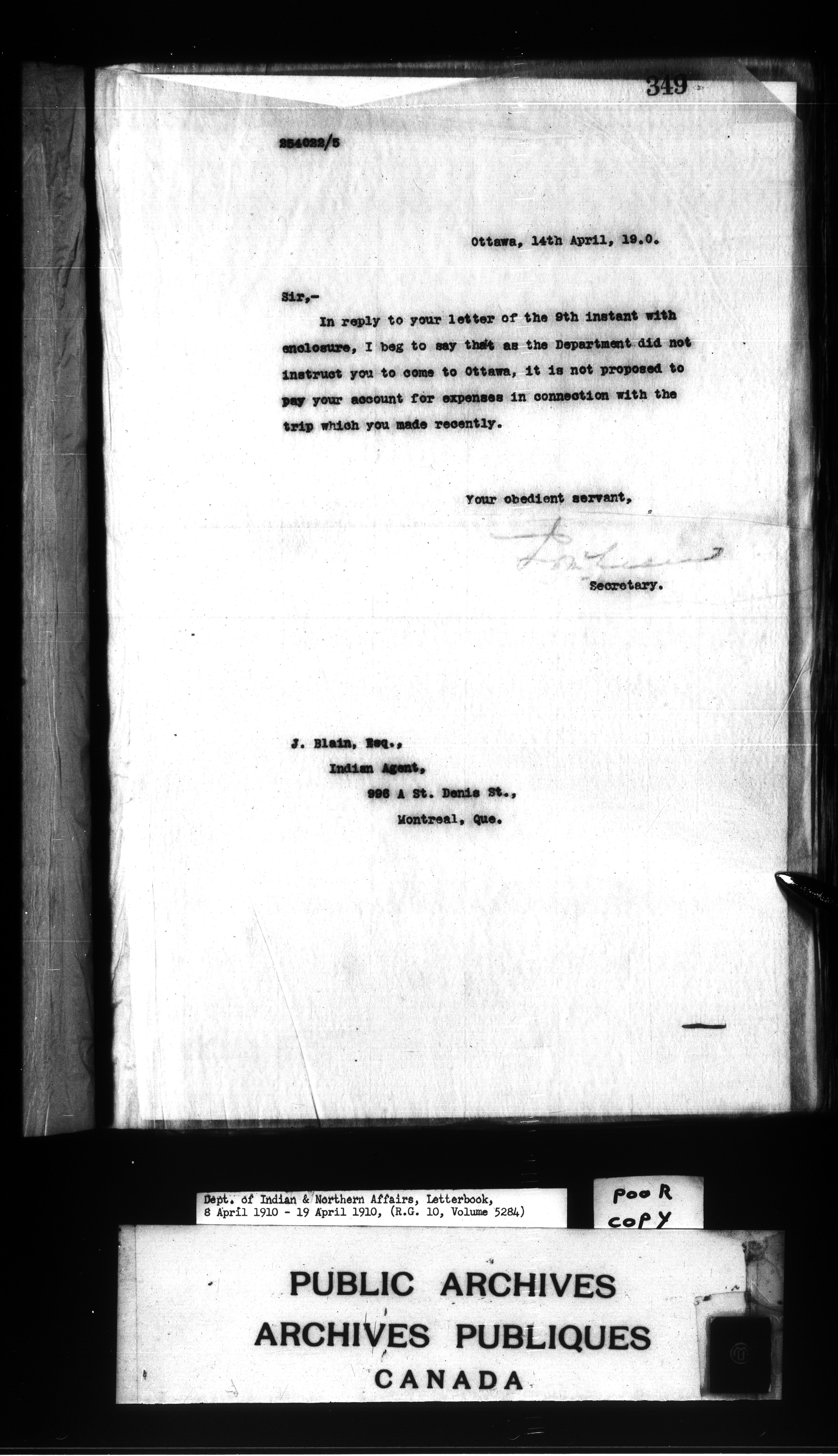 Department of Indian Affairs : Letterbooks of out-going correspondence relating to the administration of Indian Affairs in both eastern and western Canada, 1871-1920 - 7513