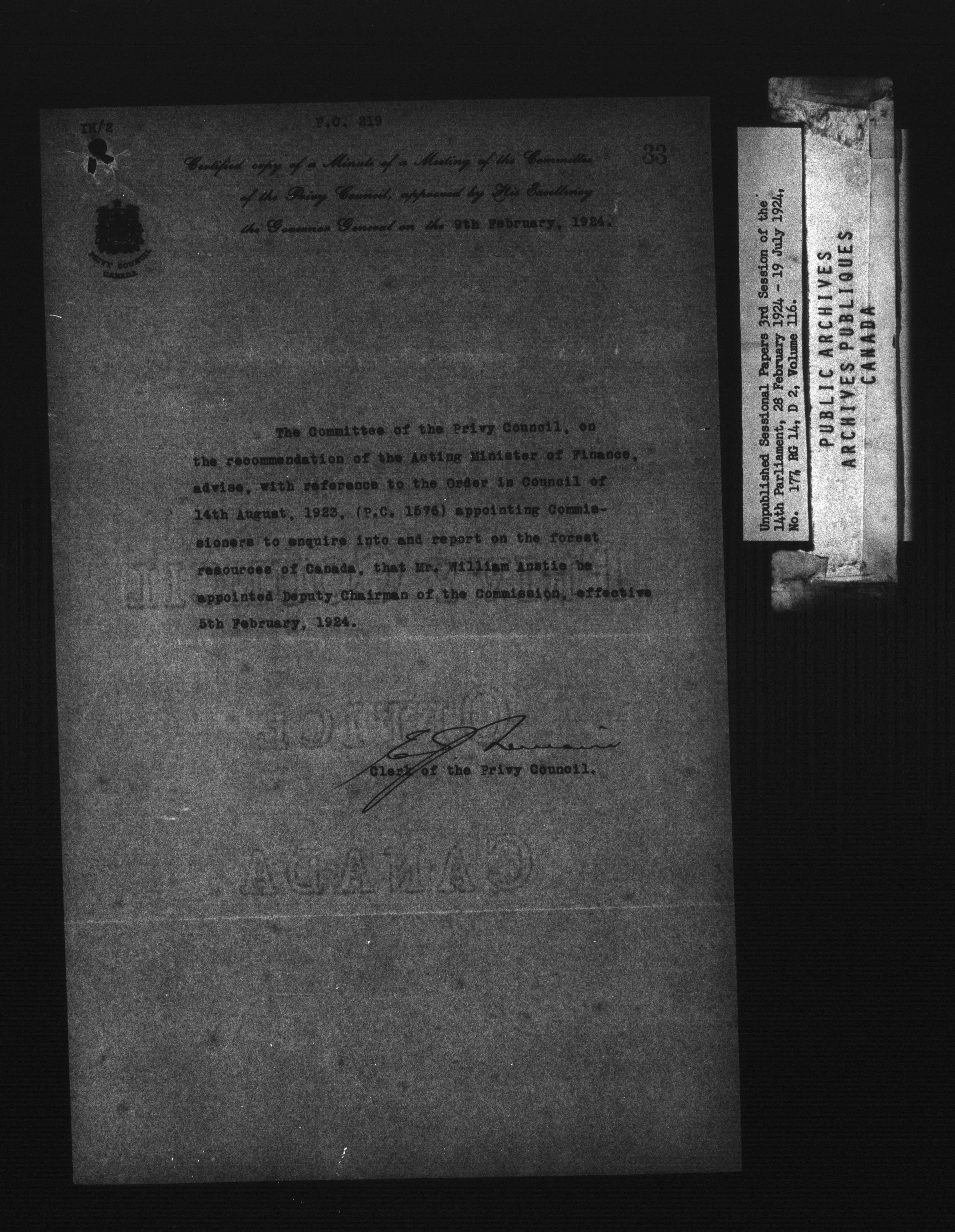 Unpublished sessional papers, 3rd Session of the 14th Parliament, 28 February - 19 July 1924 - 7517