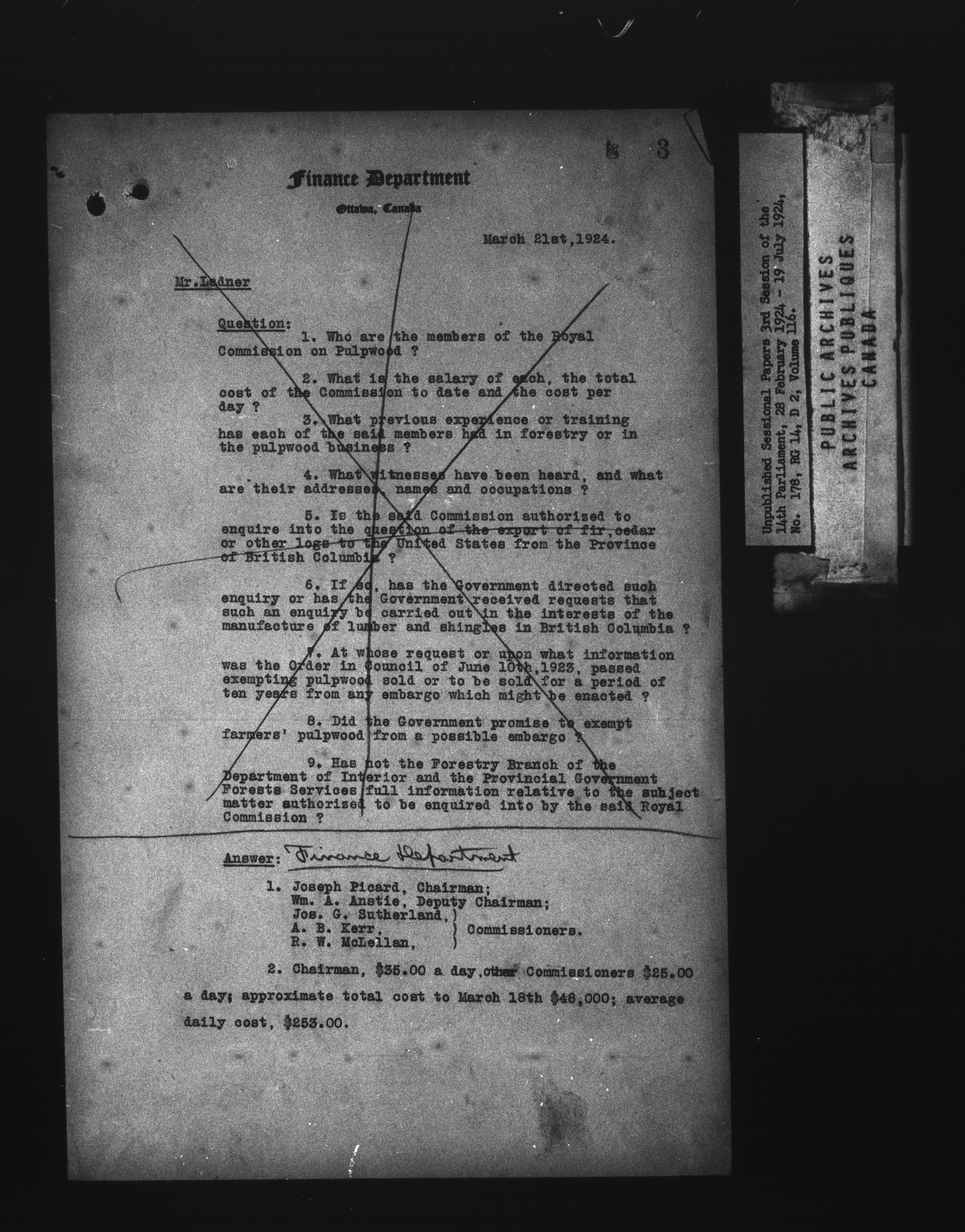 Unpublished sessional papers, 3rd Session of the 14th Parliament, 28 February - 19 July 1924 - 7517