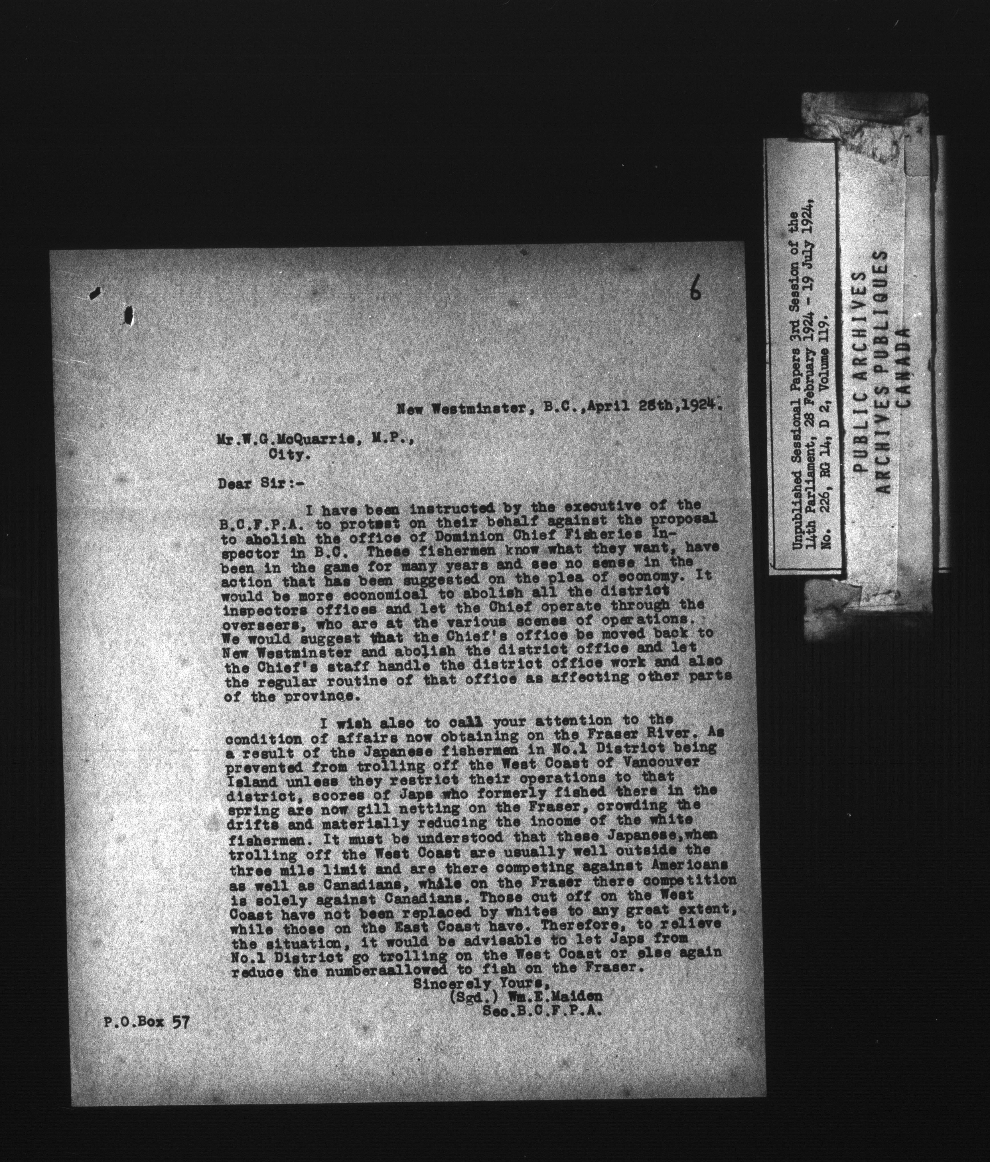 Unpublished sessional papers, 3rd Session of the 14th Parliament, 28 February - 19 July 1924 - 7518