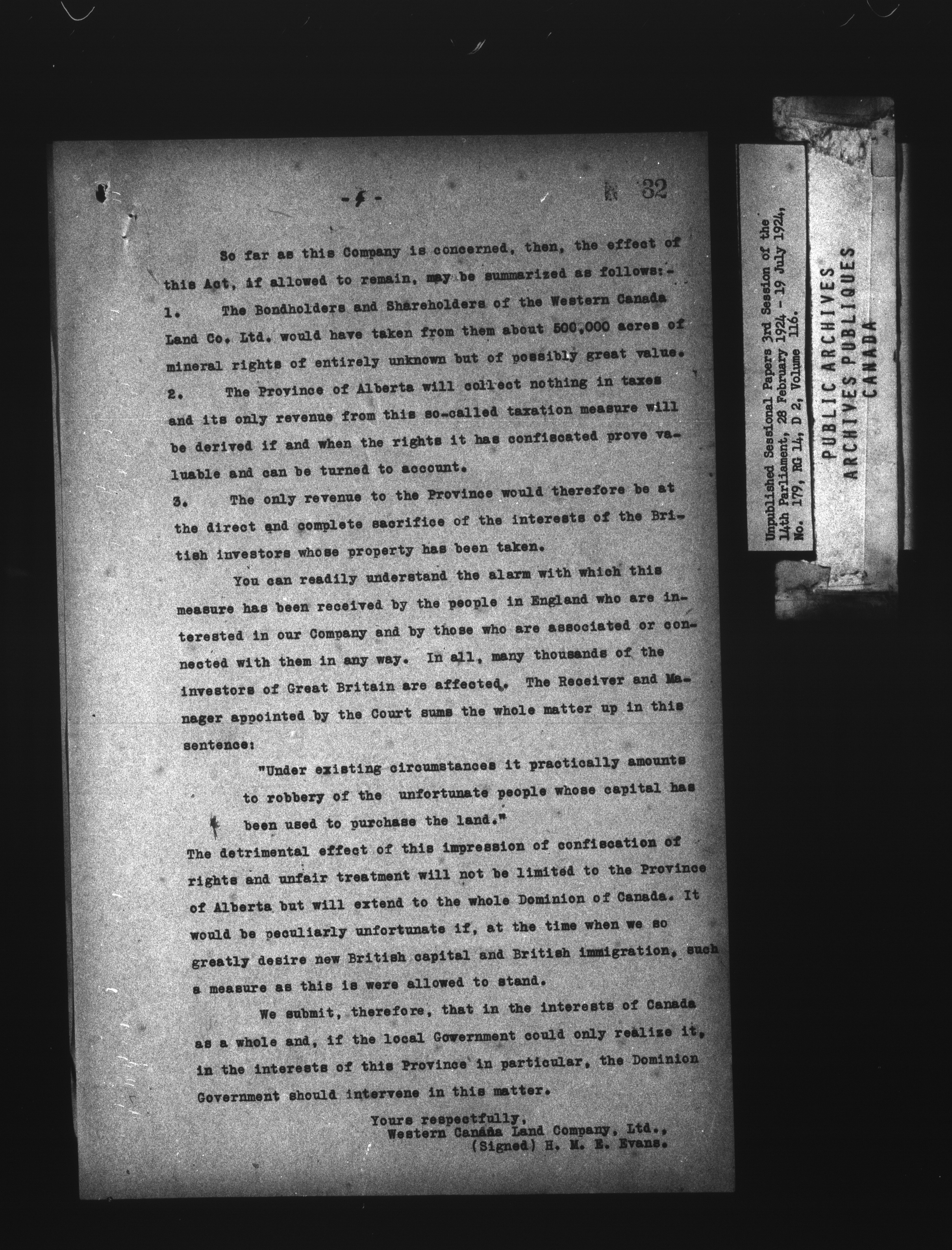 Unpublished sessional papers, 3rd Session of the 14th Parliament, 28 February - 19 July 1924 - 7518