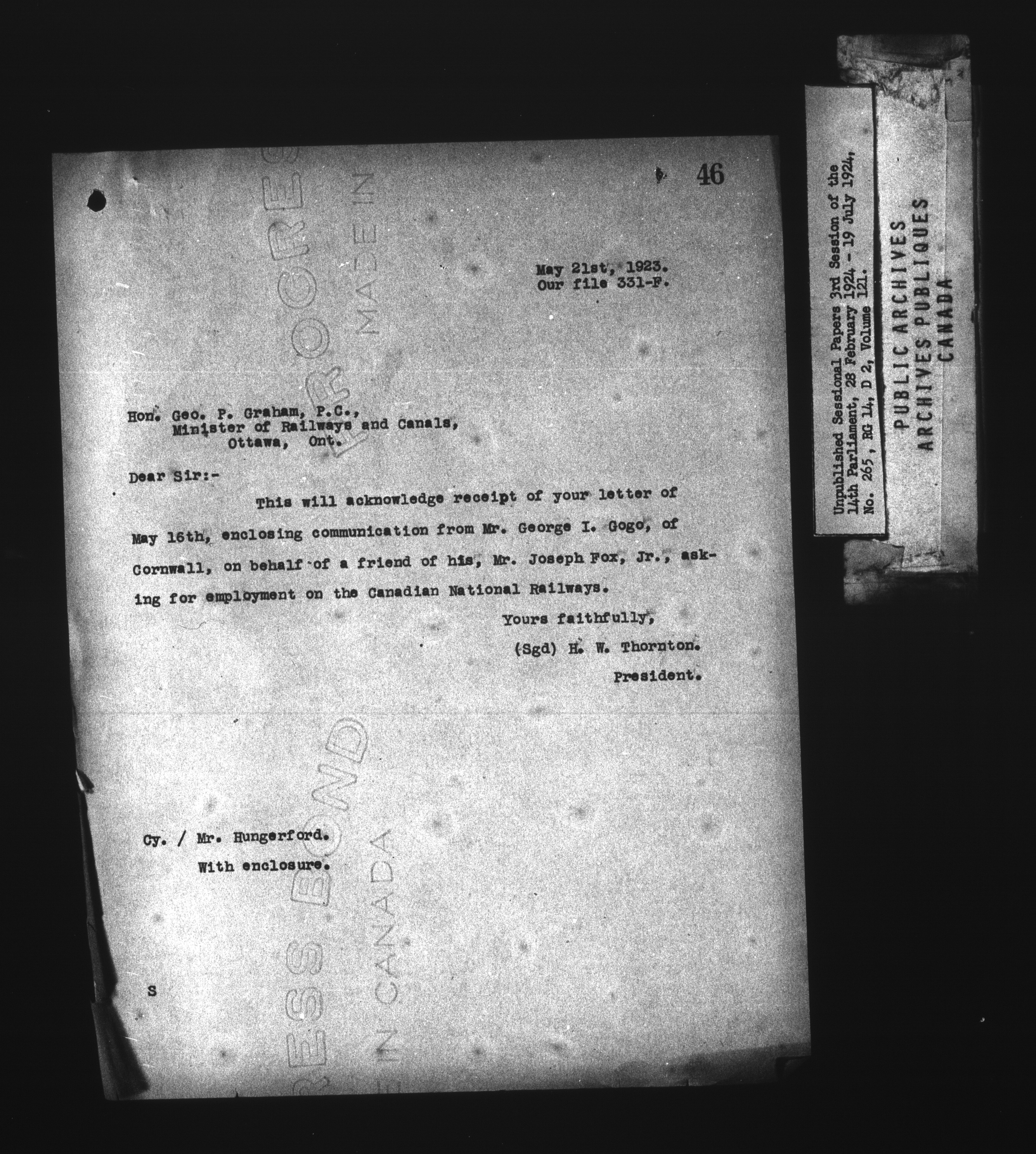 Unpublished sessional papers, 3rd Session of the 14th Parliament, 28 February - 19 July 1924 - 7520