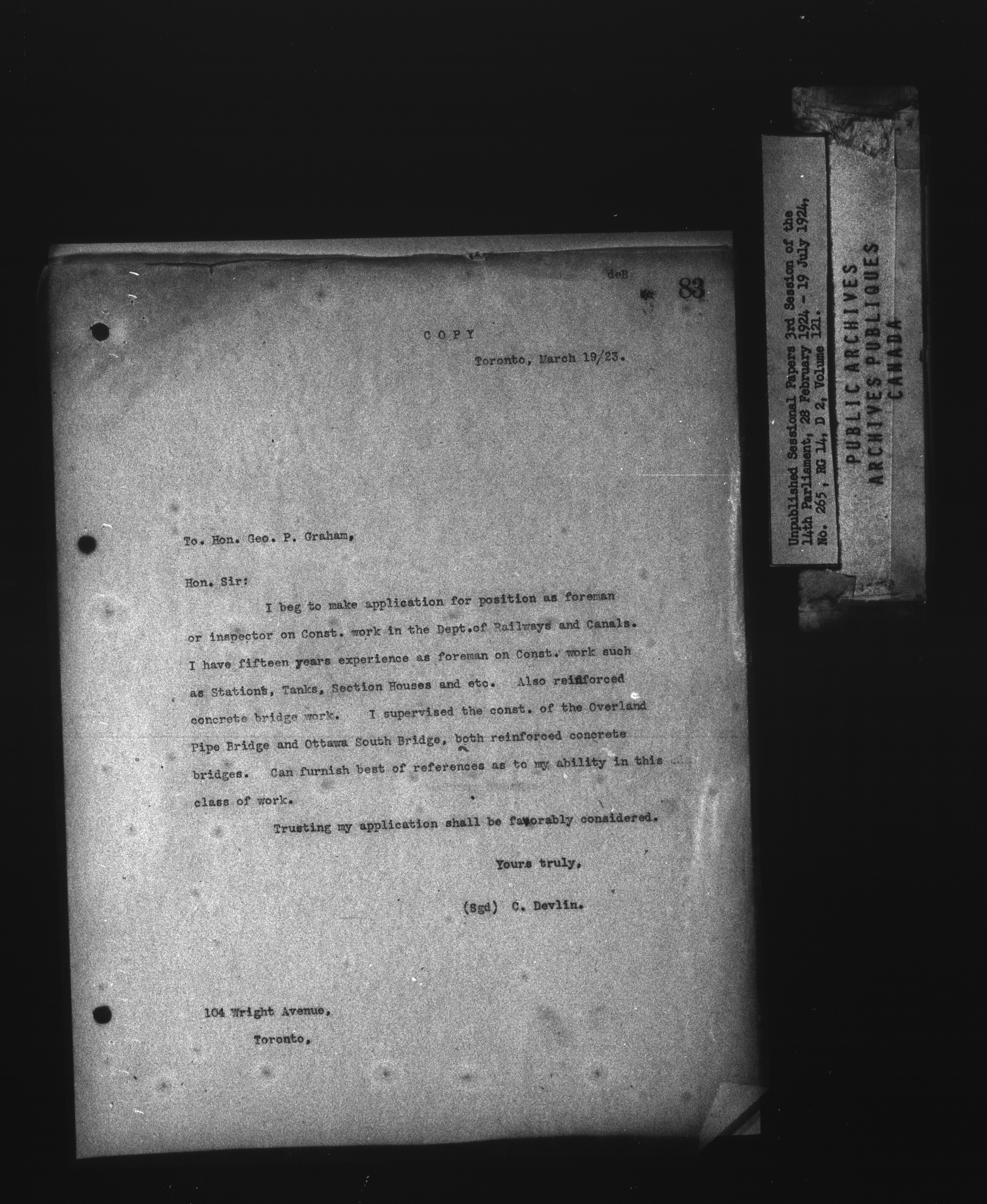 Unpublished sessional papers, 3rd Session of the 14th Parliament, 28 February - 19 July 1924 - 7520