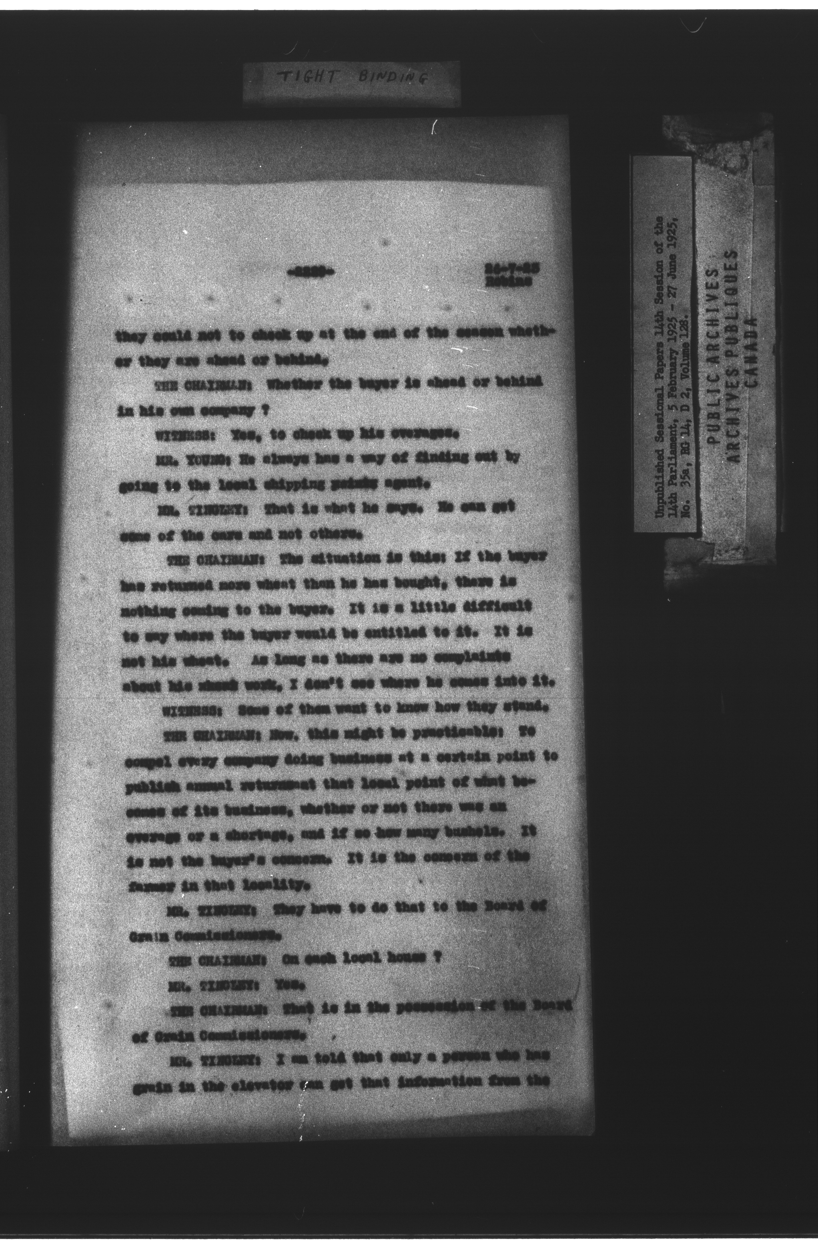 Unpublished sessional papers, 4th session of the 14th Parliament, 5 February - 27 June 1925 - 7524