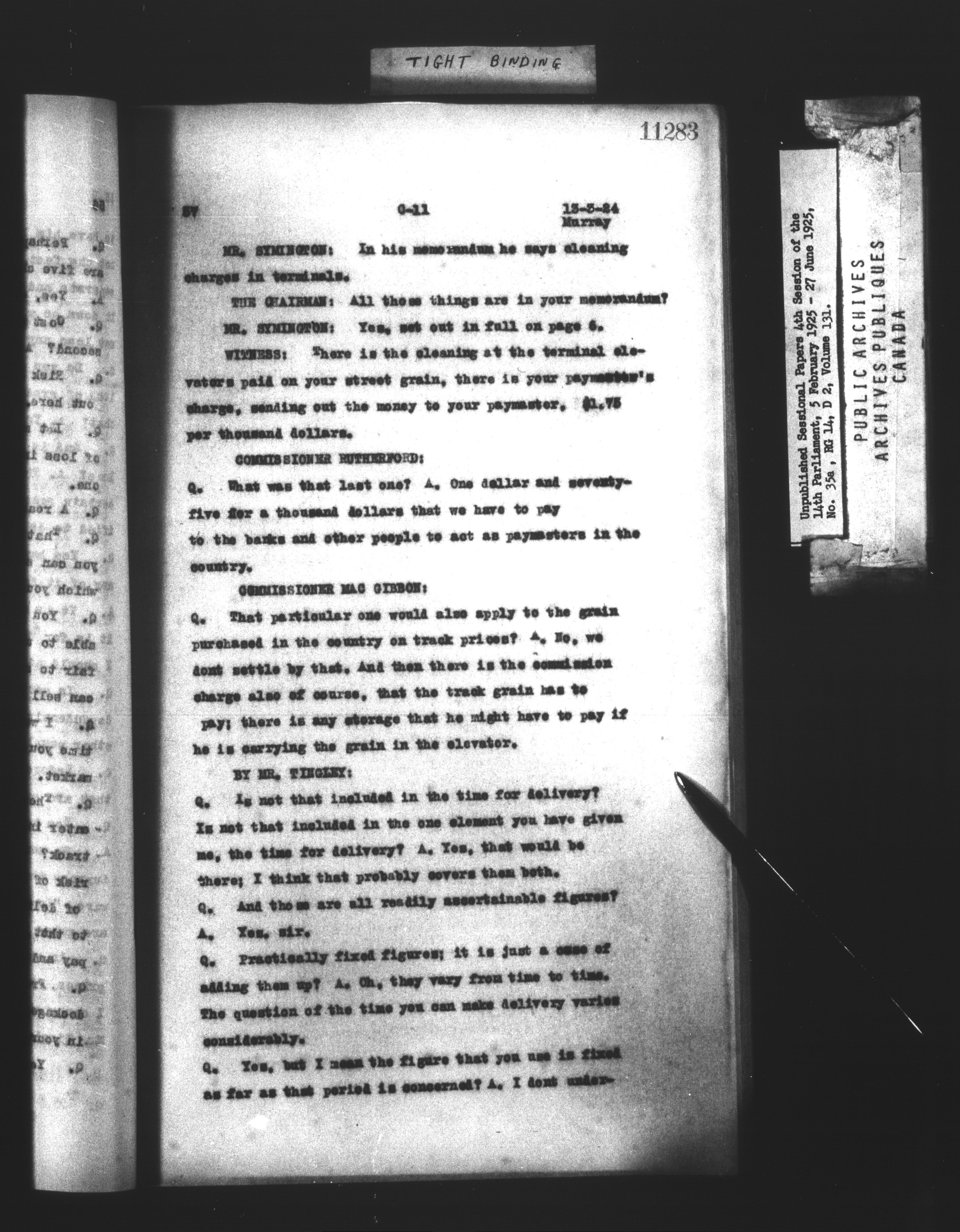 Unpublished sessional papers, 4th session of the 14th Parliament, 5 February - 27 June 1925 - 7527