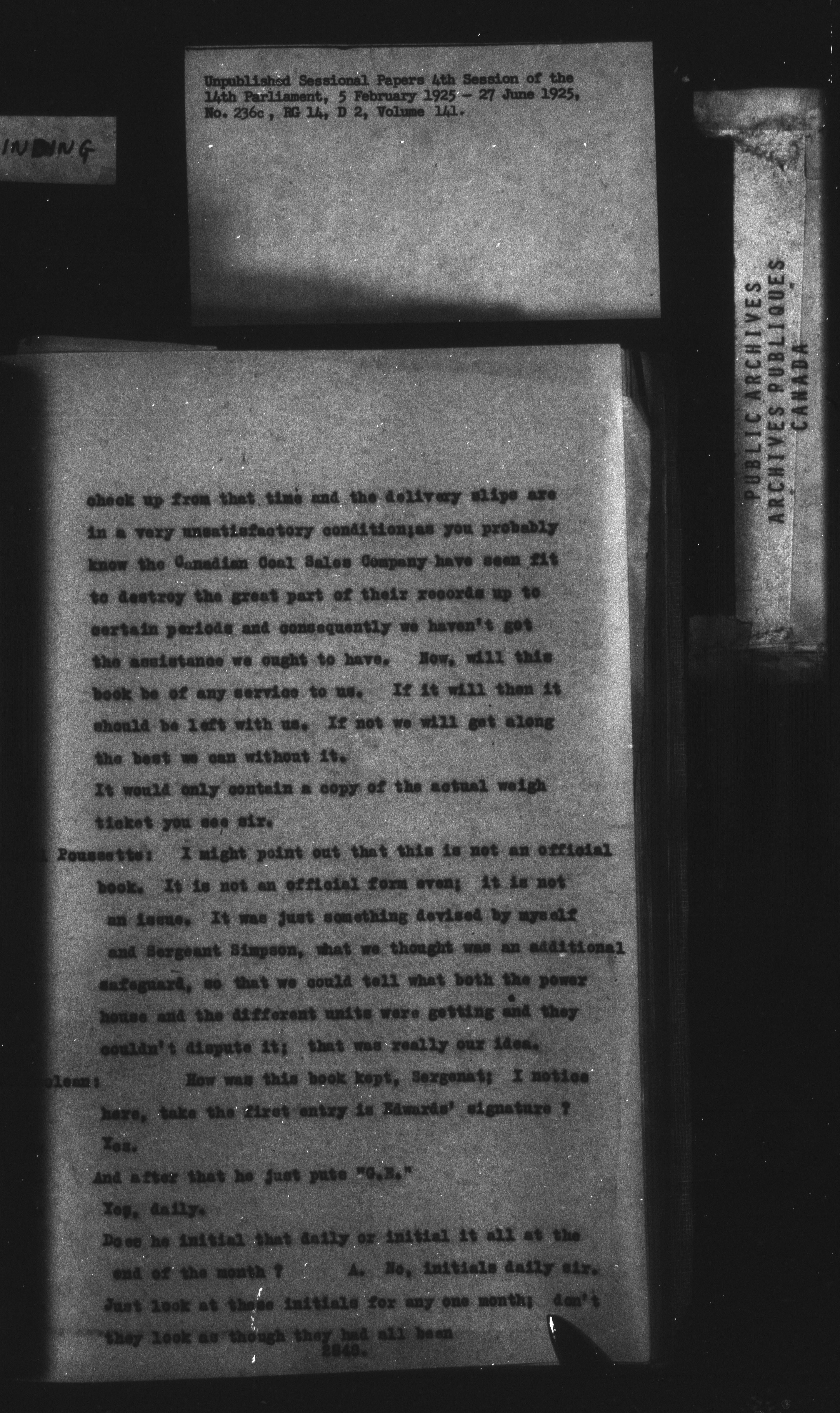 Unpublished sessional papers, 4th session of the 14th Parliament, 5 February - 27 June 1925 - 7536