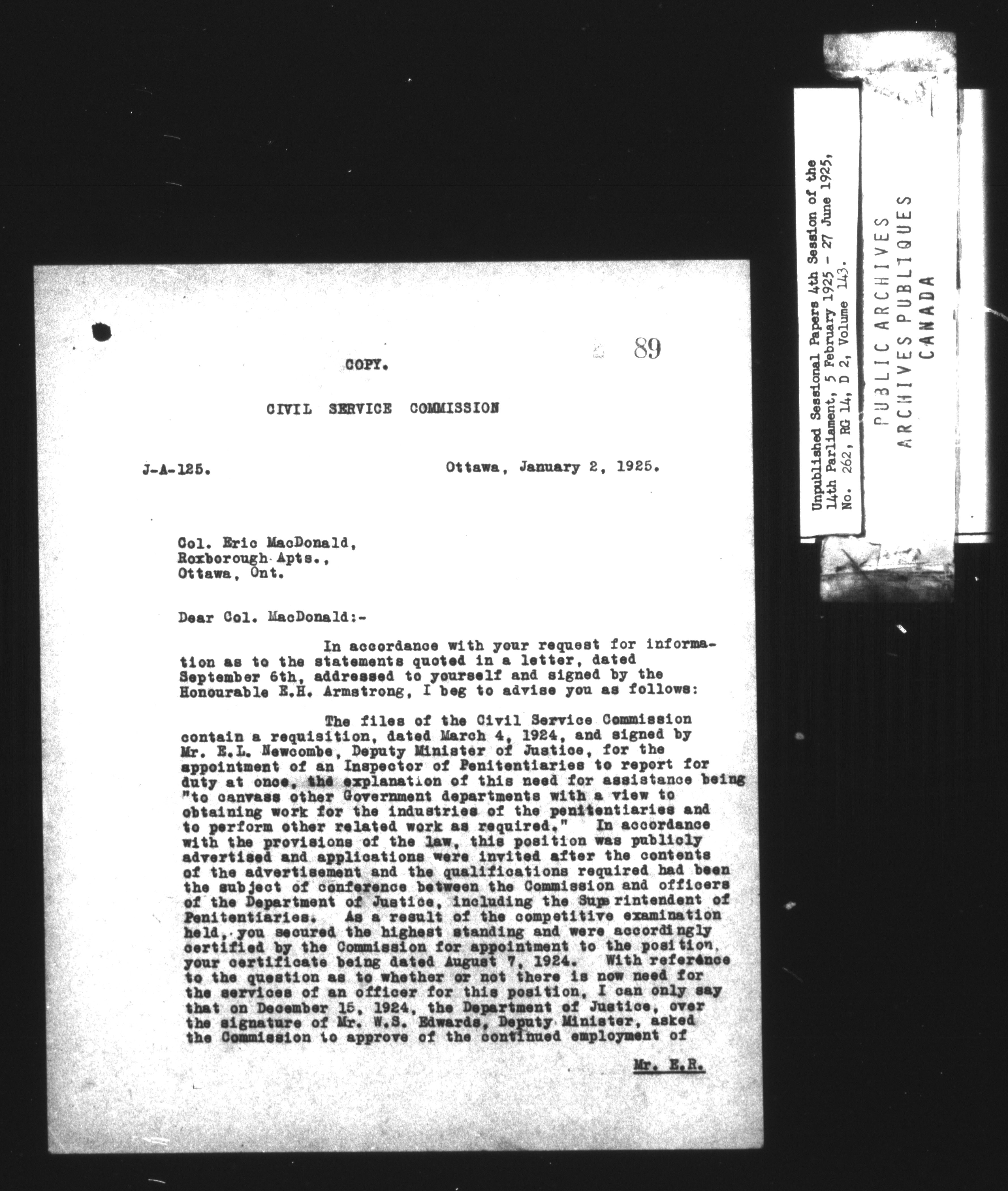Unpublished sessional papers, 4th session of the 14th Parliament, 5 February - 27 June 1925 - 7536