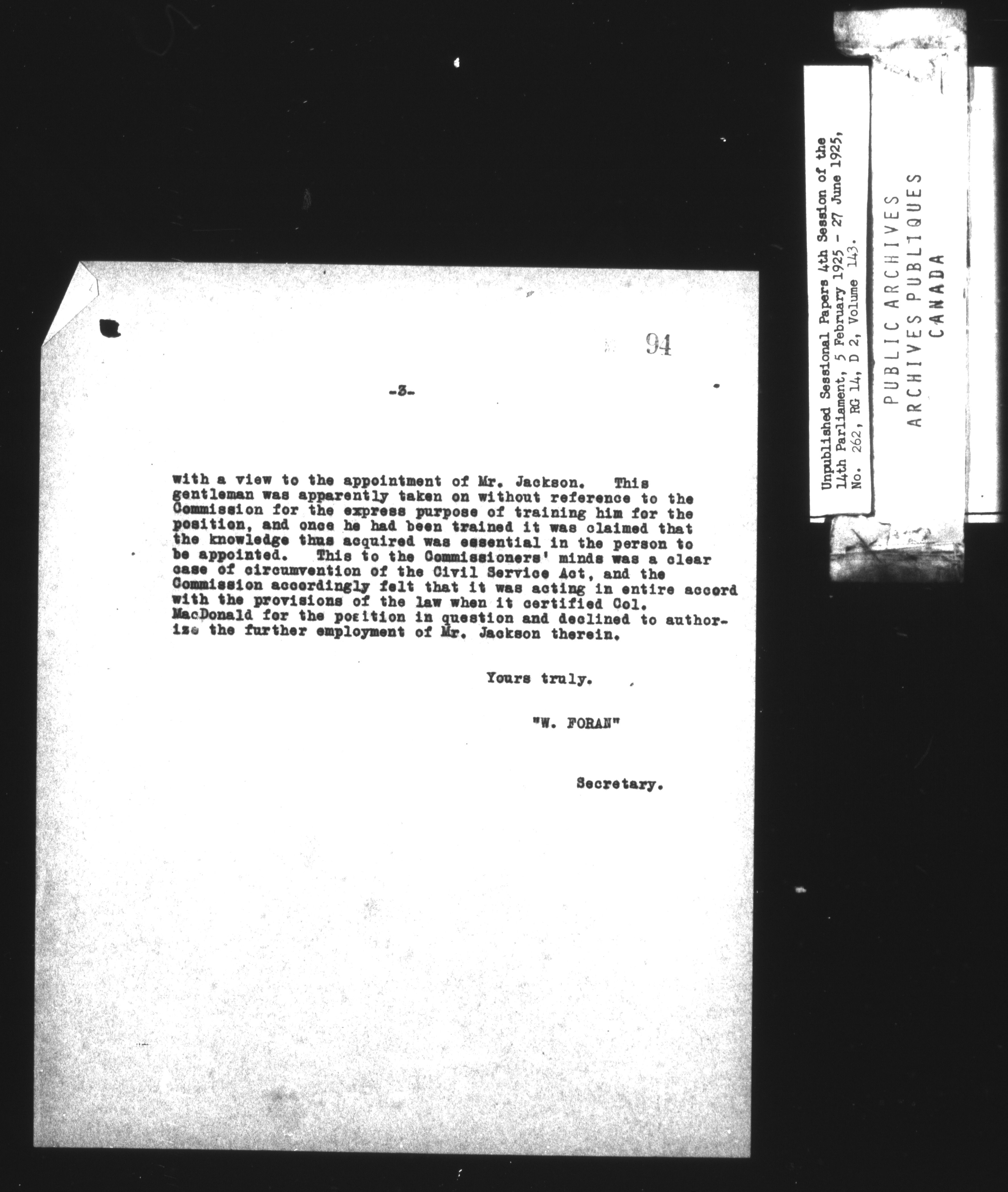 Unpublished sessional papers, 4th session of the 14th Parliament, 5 February - 27 June 1925 - 7536
