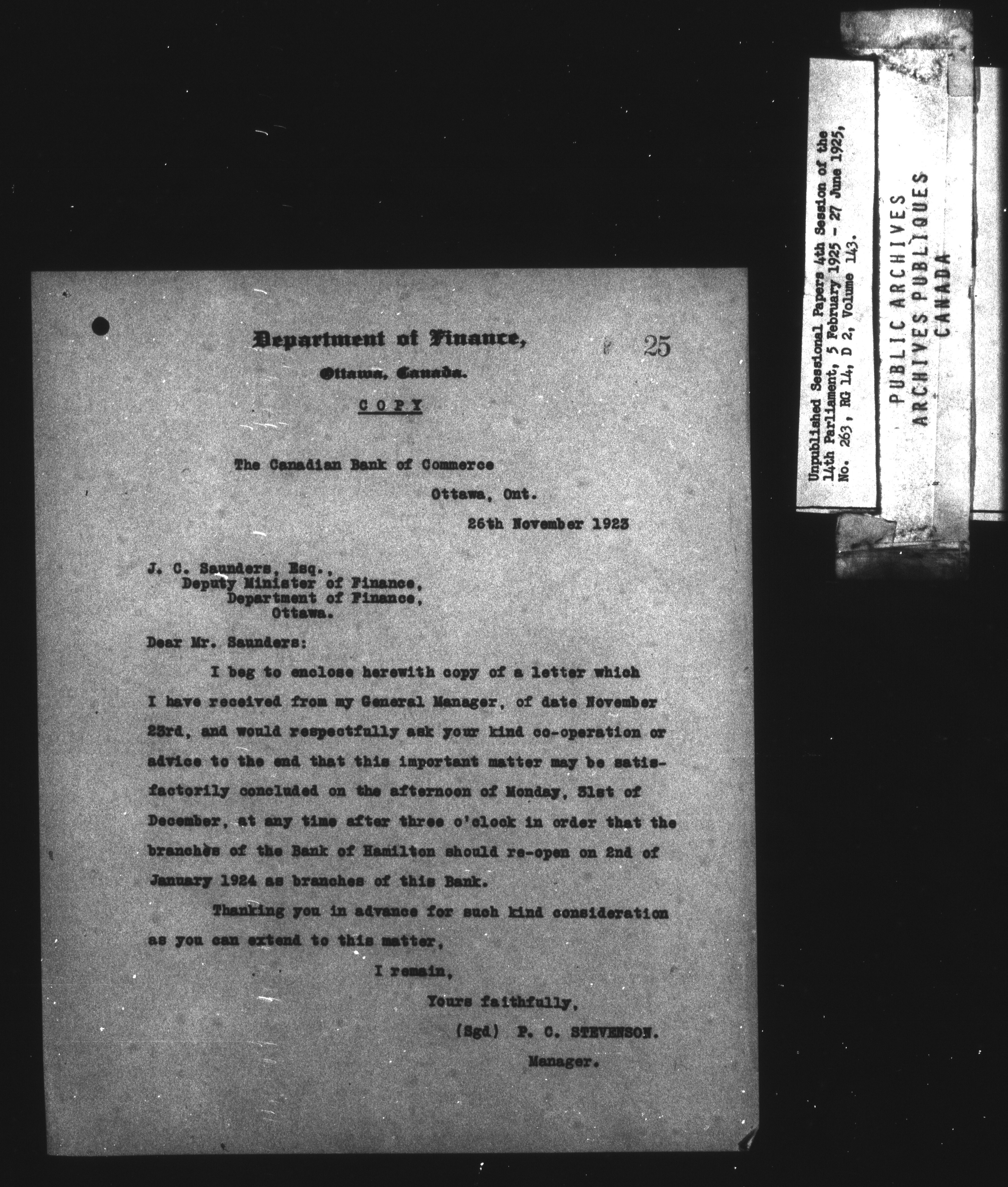 Unpublished sessional papers, 4th session of the 14th Parliament, 5 February - 27 June 1925 - 7537