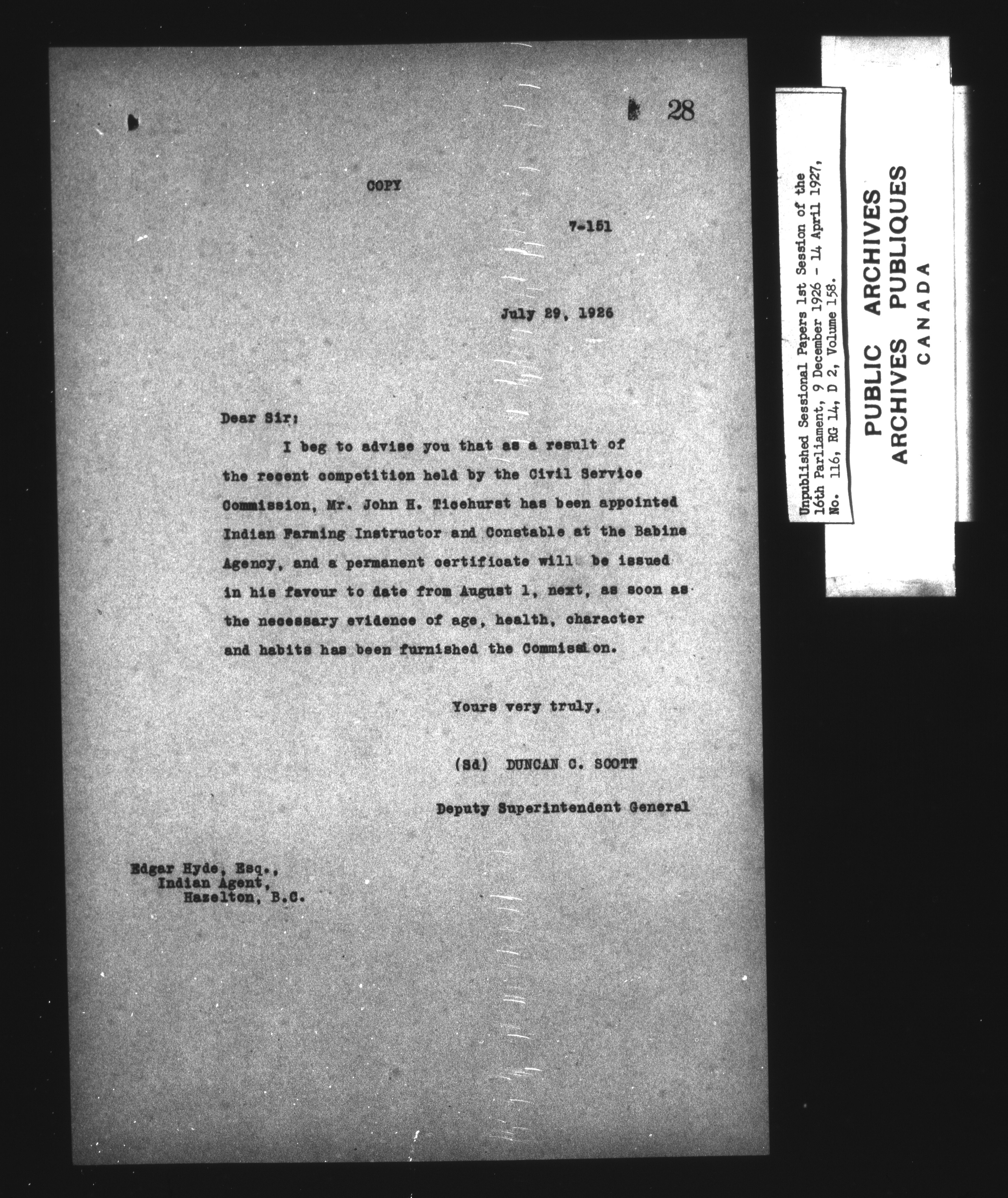 Unpublished sessional papers, 1st session of the 16th Parliament, 9 December 1926 - 14 April 1927 - 7541