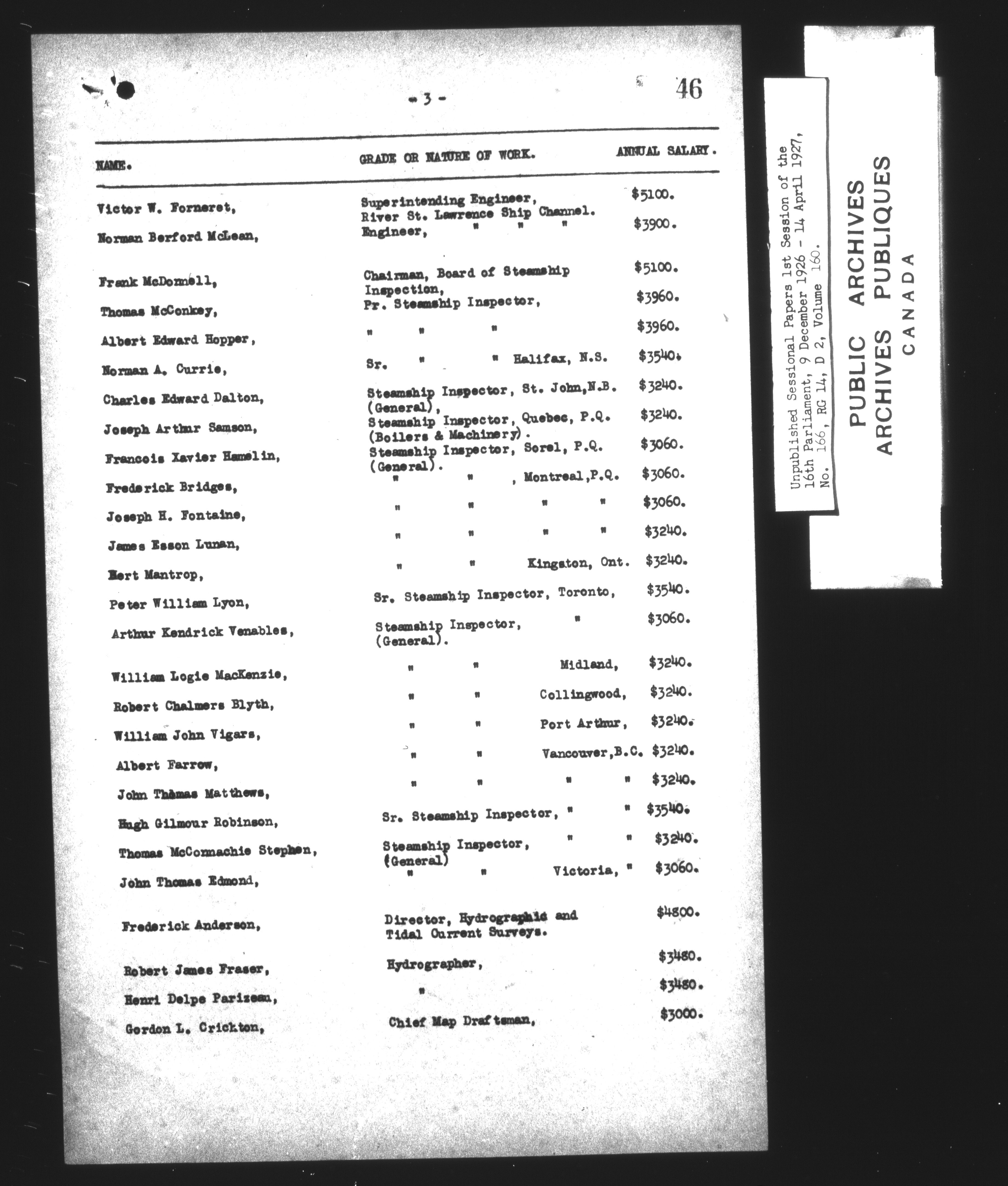 Unpublished sessional papers, 1st session of the 16th Parliament, 9 December 1926 - 14 April 1927 - 7542