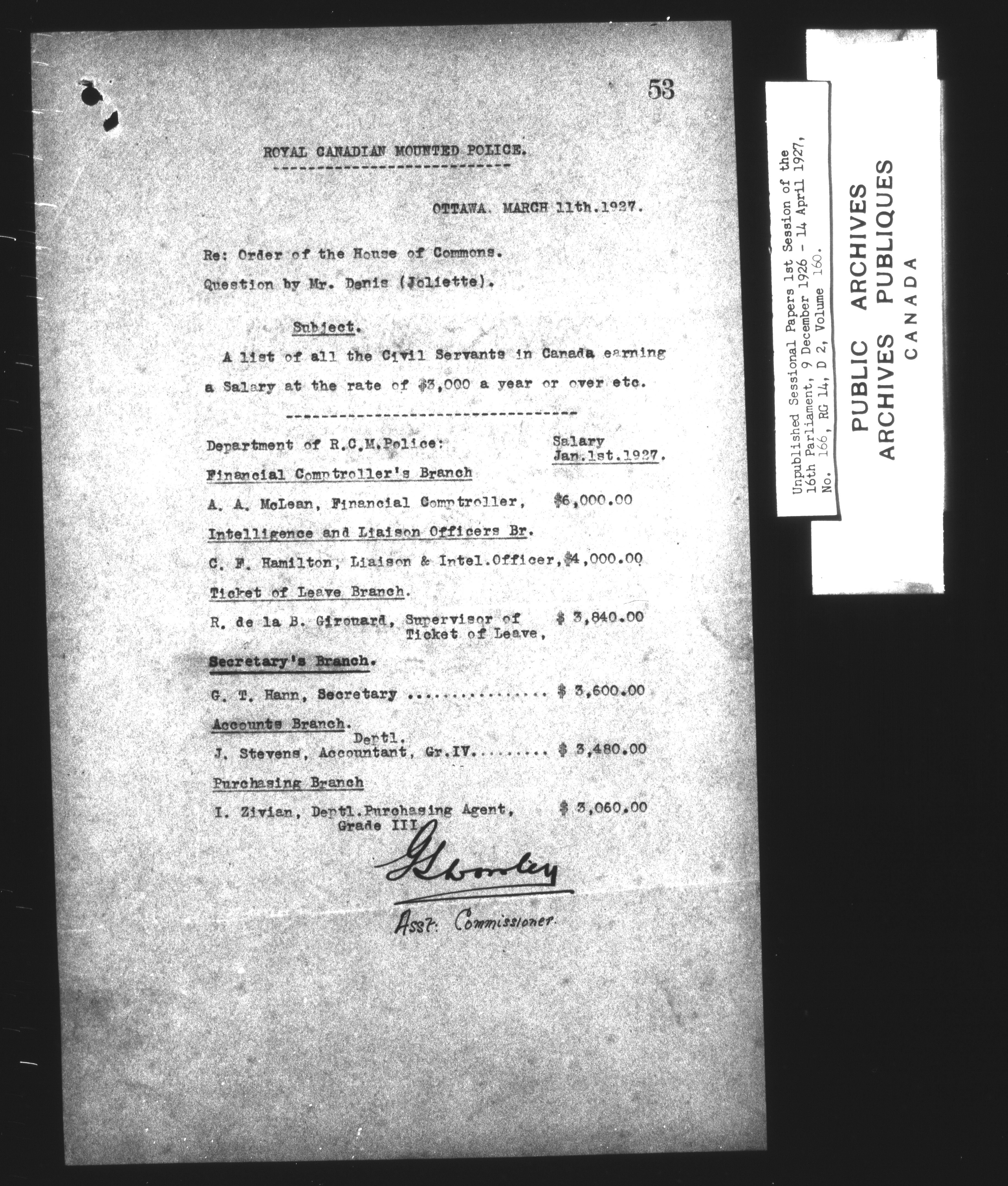 Unpublished sessional papers, 1st session of the 16th Parliament, 9 December 1926 - 14 April 1927 - 7542
