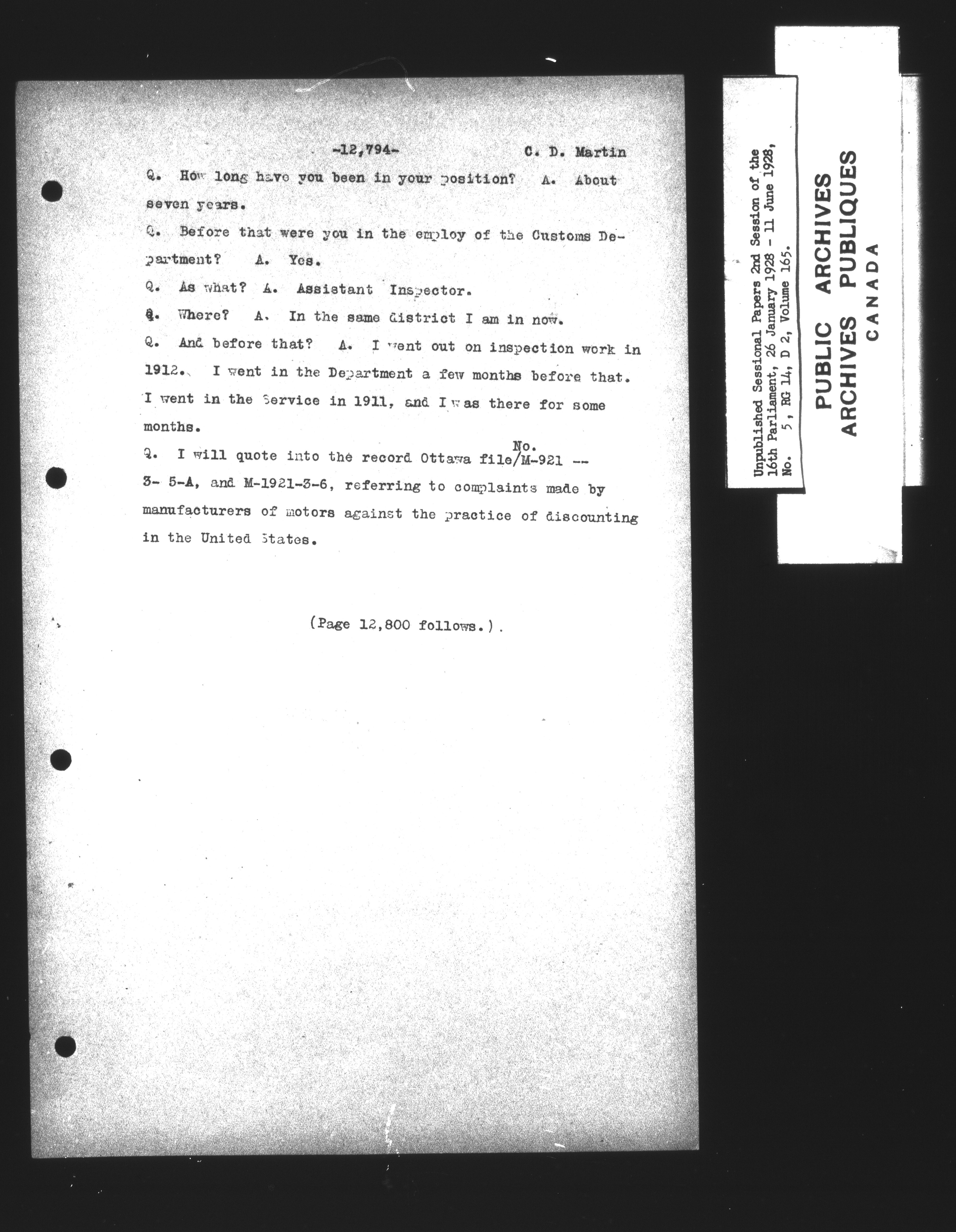 Unpublished sessional papers, 2nd session of the 16th Parliament, 26 January-11 June 1928 - 7547