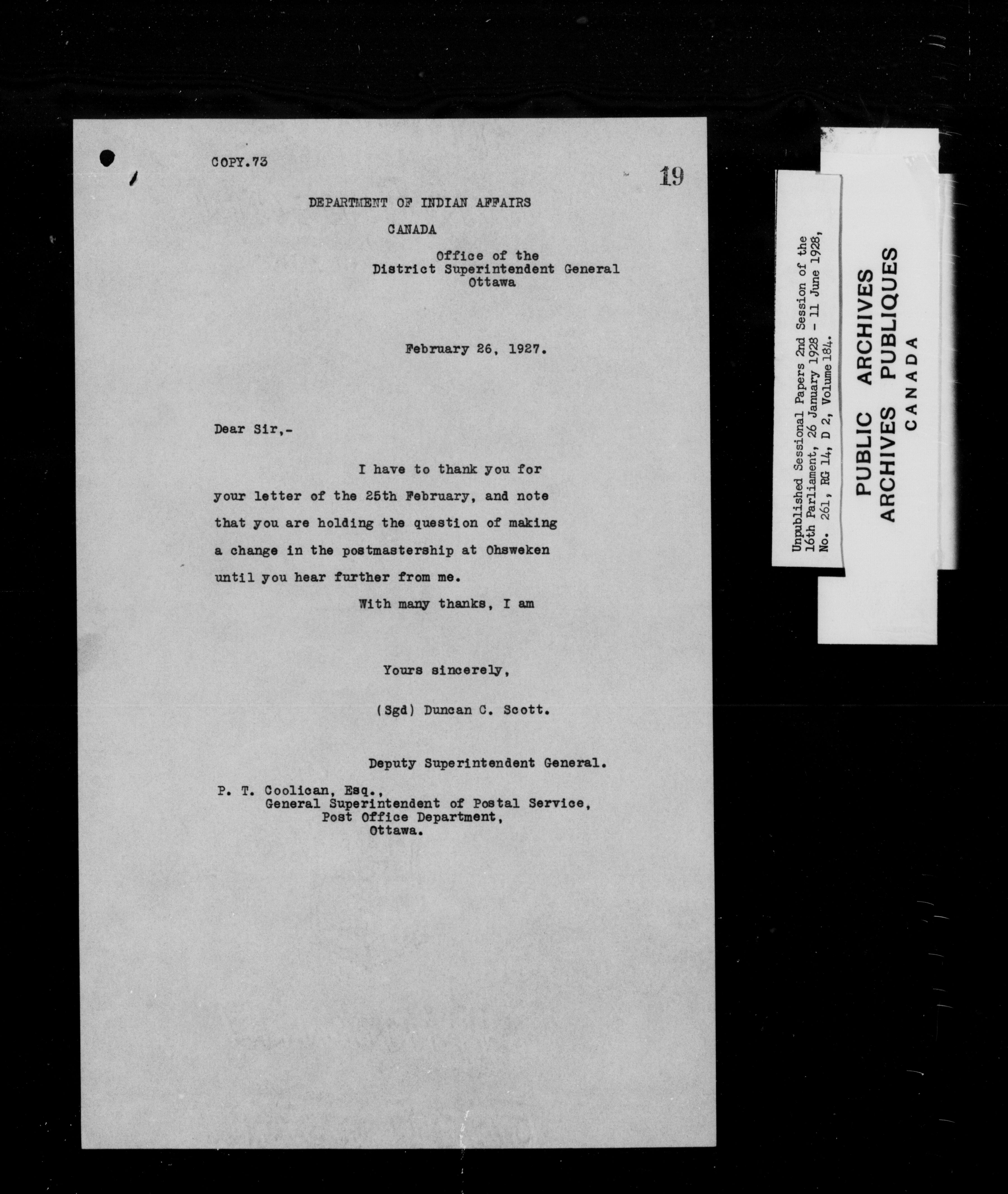 Unpublished sessional papers, 2nd session of the 16th Parliament, 26 January-11 June 1928 - 7556