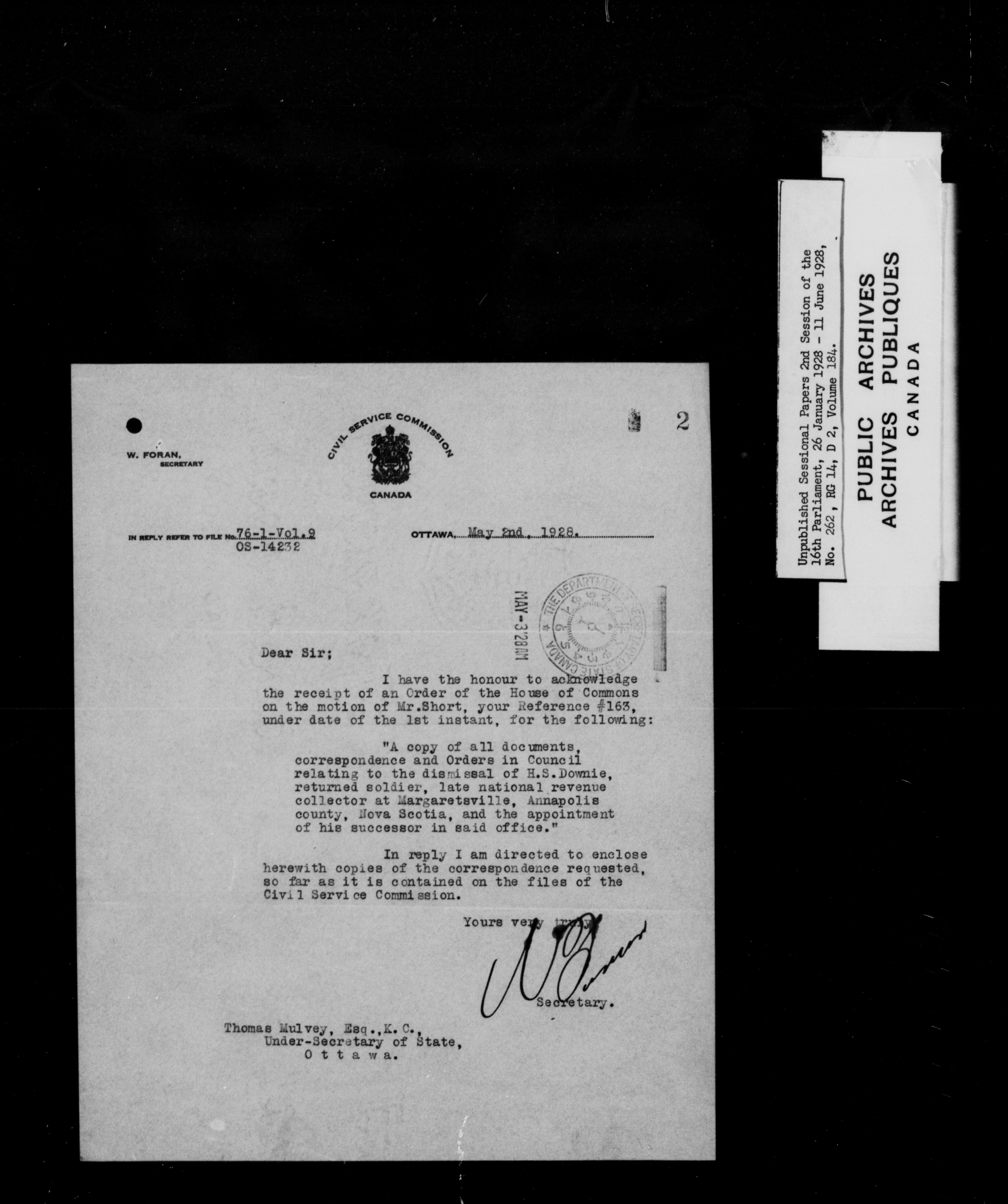 Unpublished sessional papers, 2nd session of the 16th Parliament, 26 January-11 June 1928 - 7556