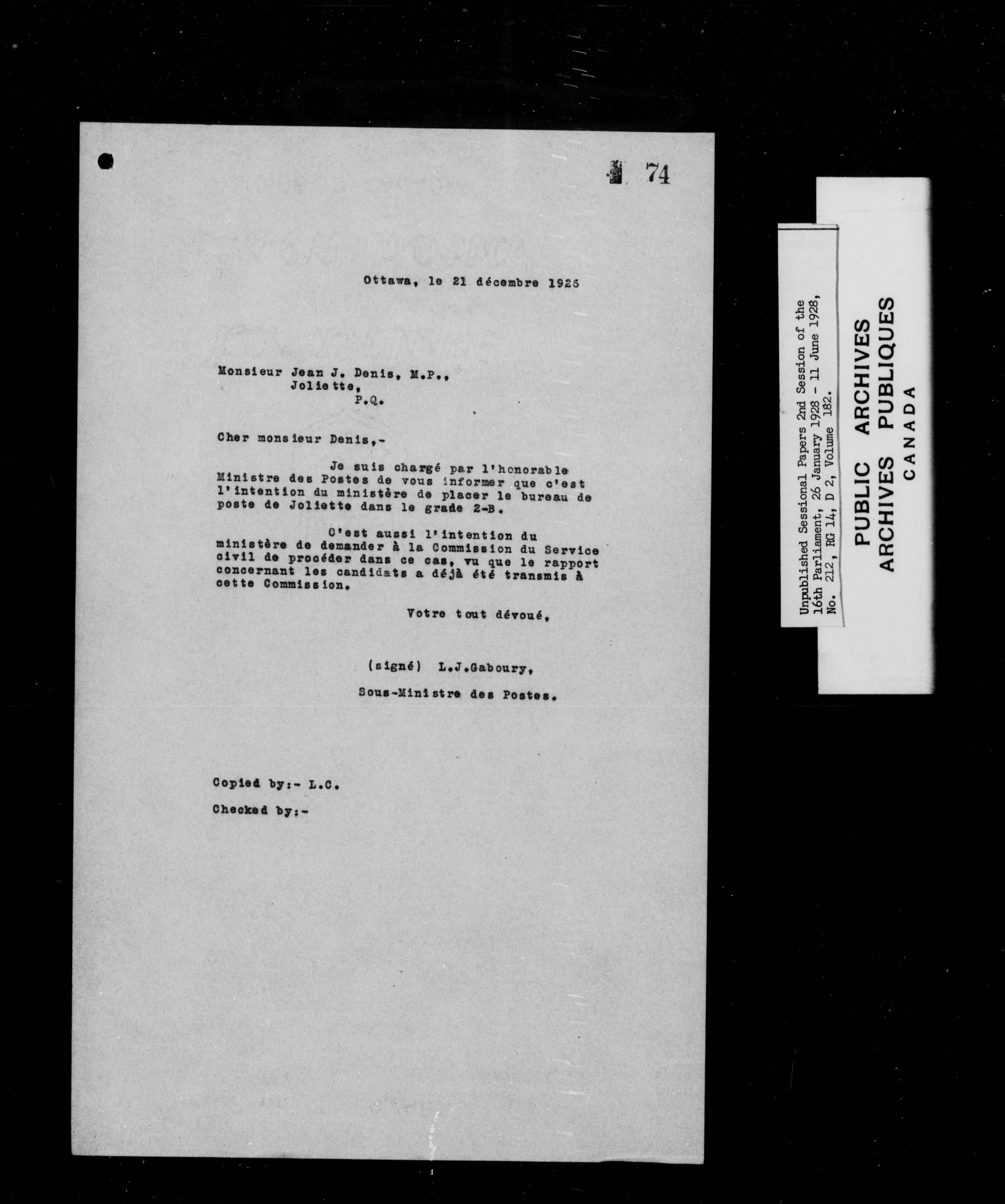 Unpublished sessional papers, 2nd session of the 16th Parliament, 26 January-11 June 1928 - 7556