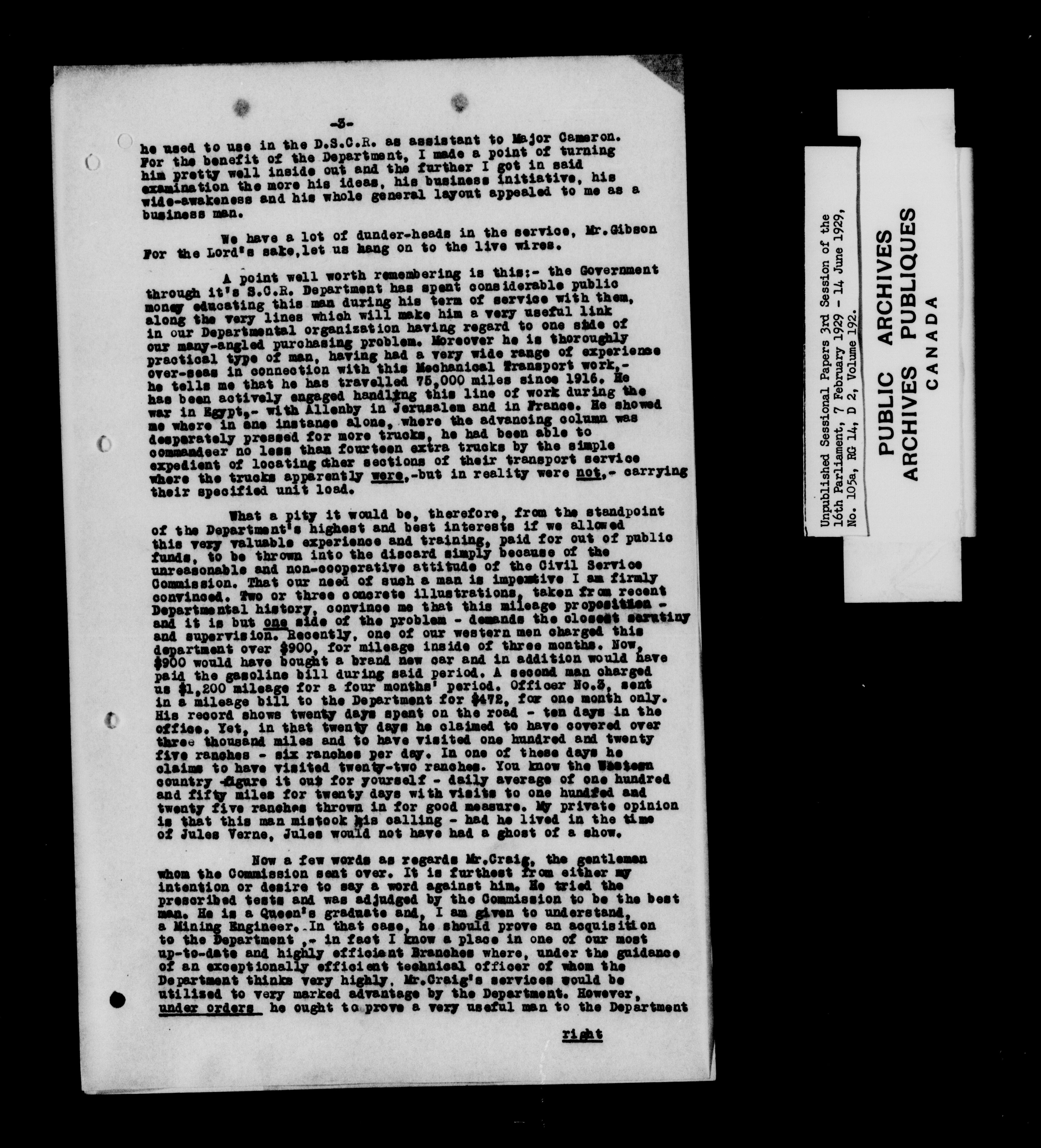 Unpublished sessional papers, 3rd session of the 16th Parliament, 7 February - 14 June 1929 - 7561