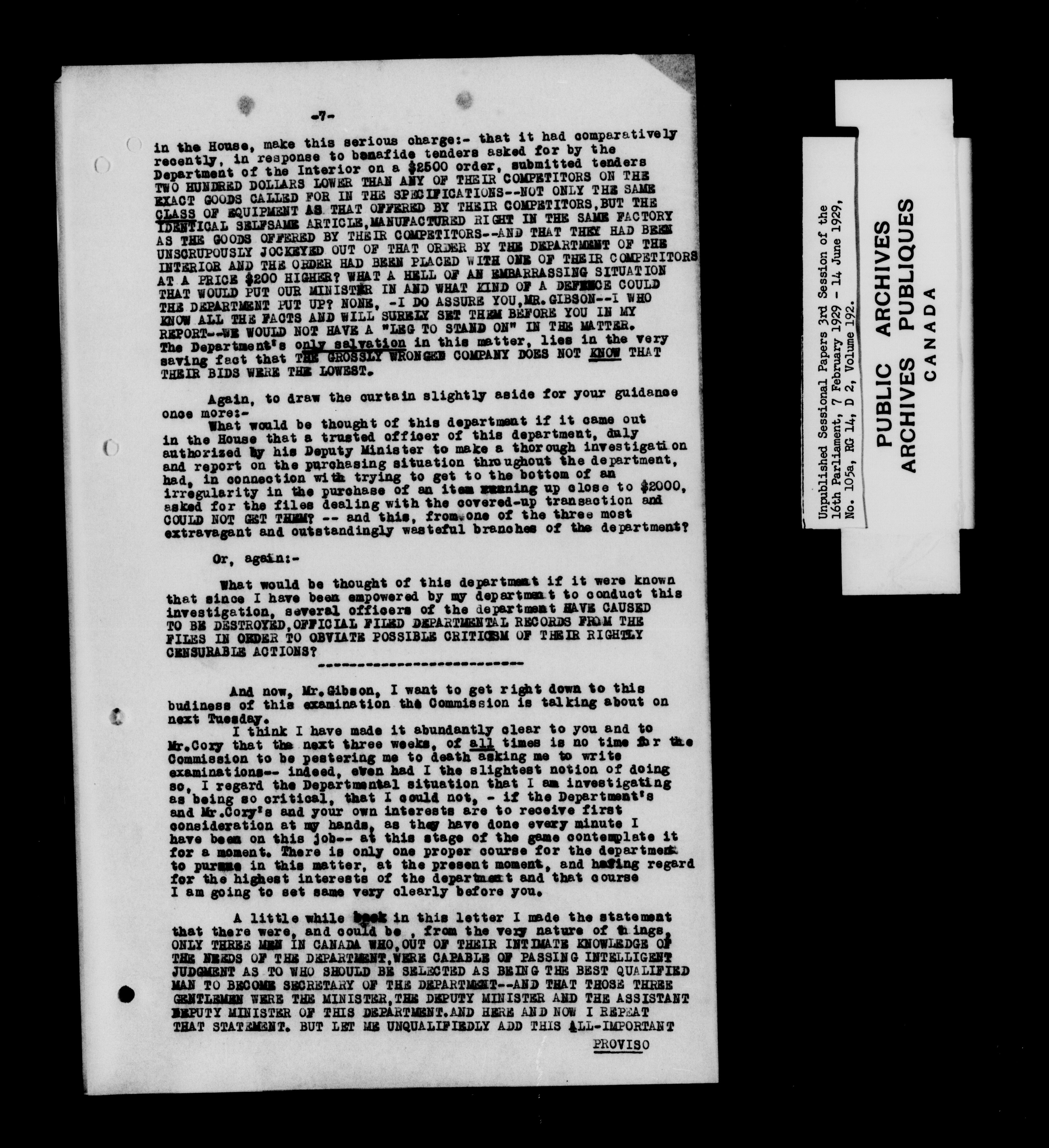 Unpublished sessional papers, 3rd session of the 16th Parliament, 7 February - 14 June 1929 - 7561