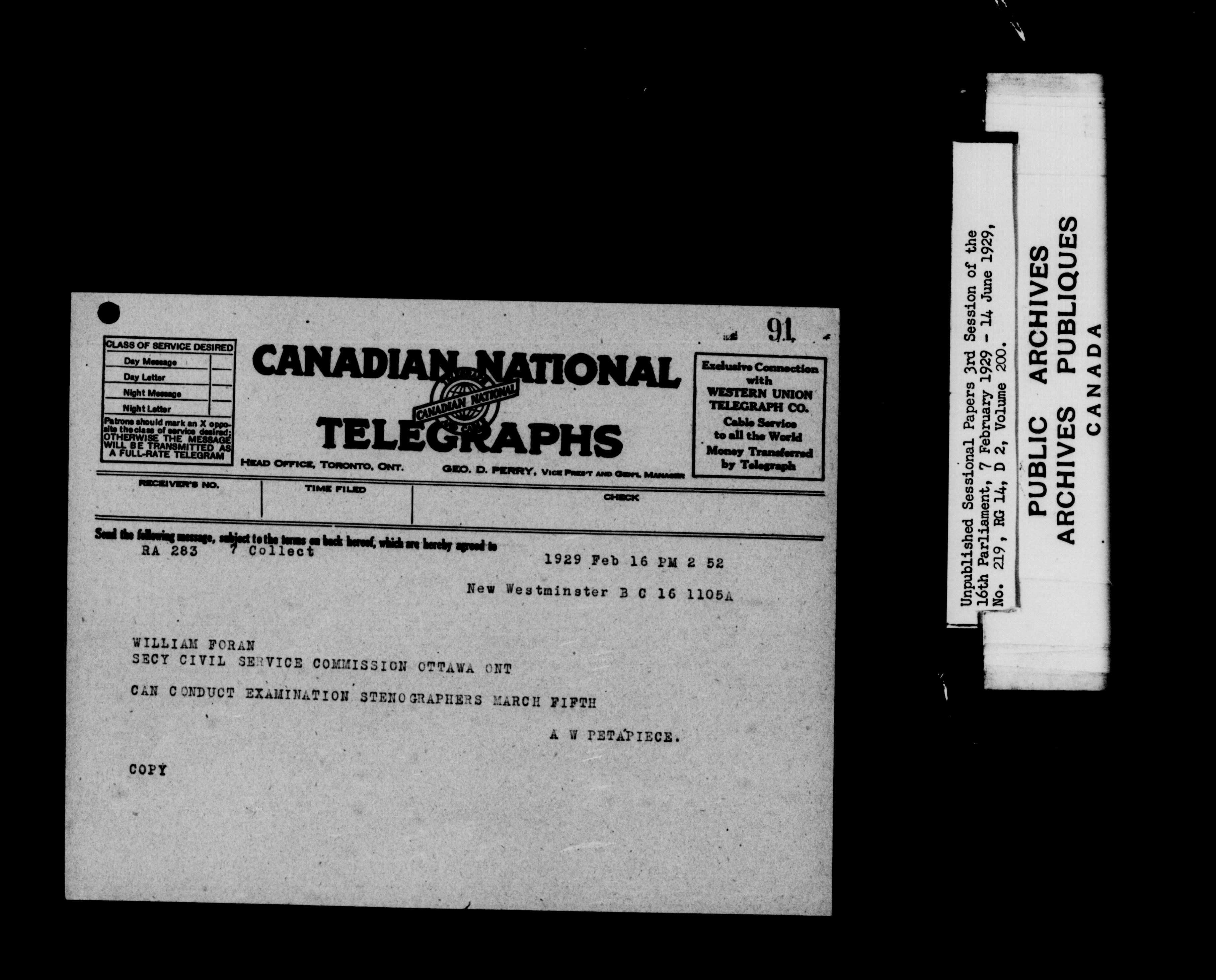 Unpublished sessional papers, 3rd session of the 16th Parliament, 7 February - 14 June 1929 - 7565