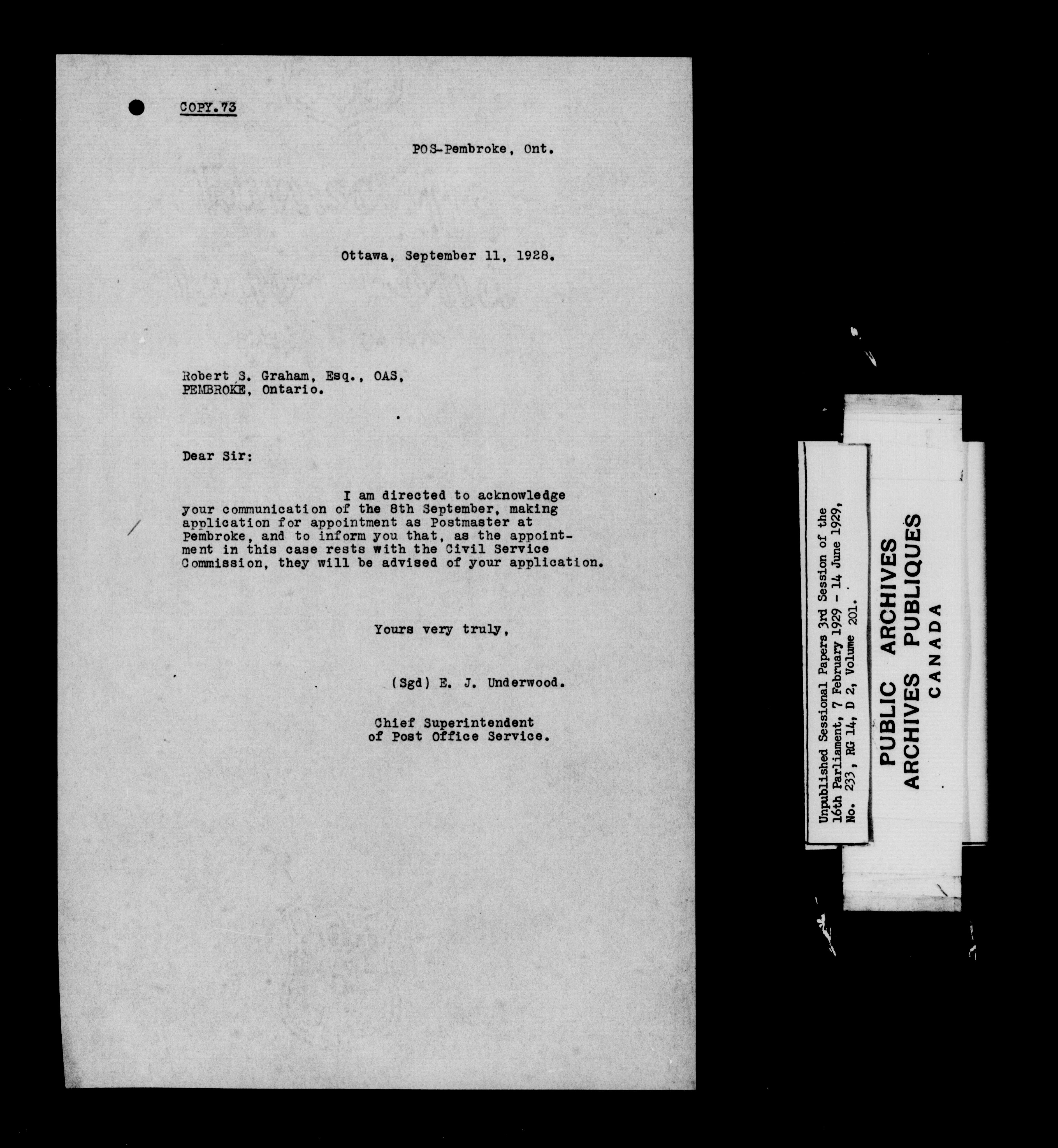 Unpublished sessional papers, 3rd session of the 16th Parliament, 7 February - 14 June 1929 - 7567
