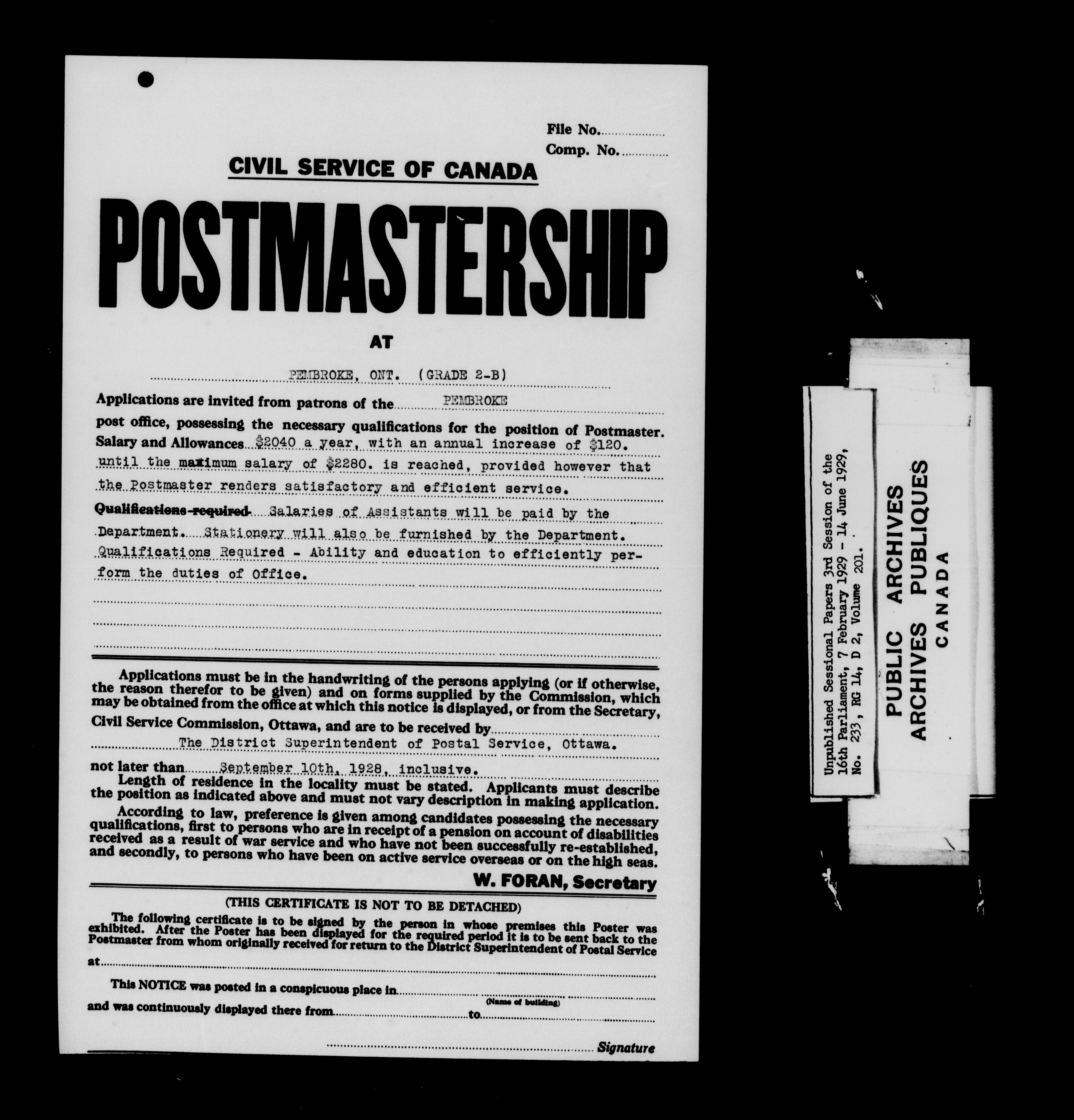 Unpublished sessional papers, 3rd session of the 16th Parliament, 7 February - 14 June 1929 - 7567