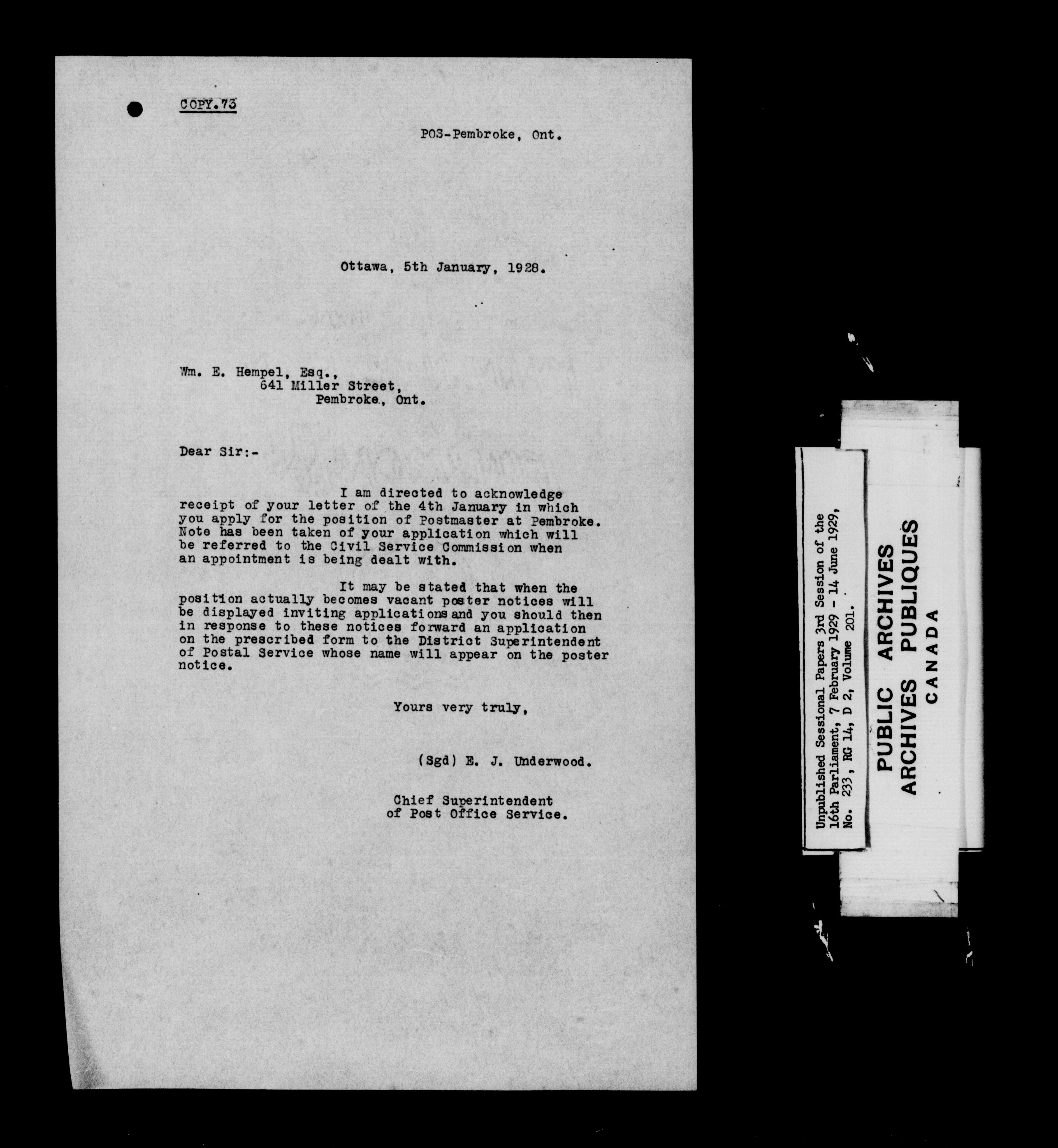 Unpublished sessional papers, 3rd session of the 16th Parliament, 7 February - 14 June 1929 - 7567