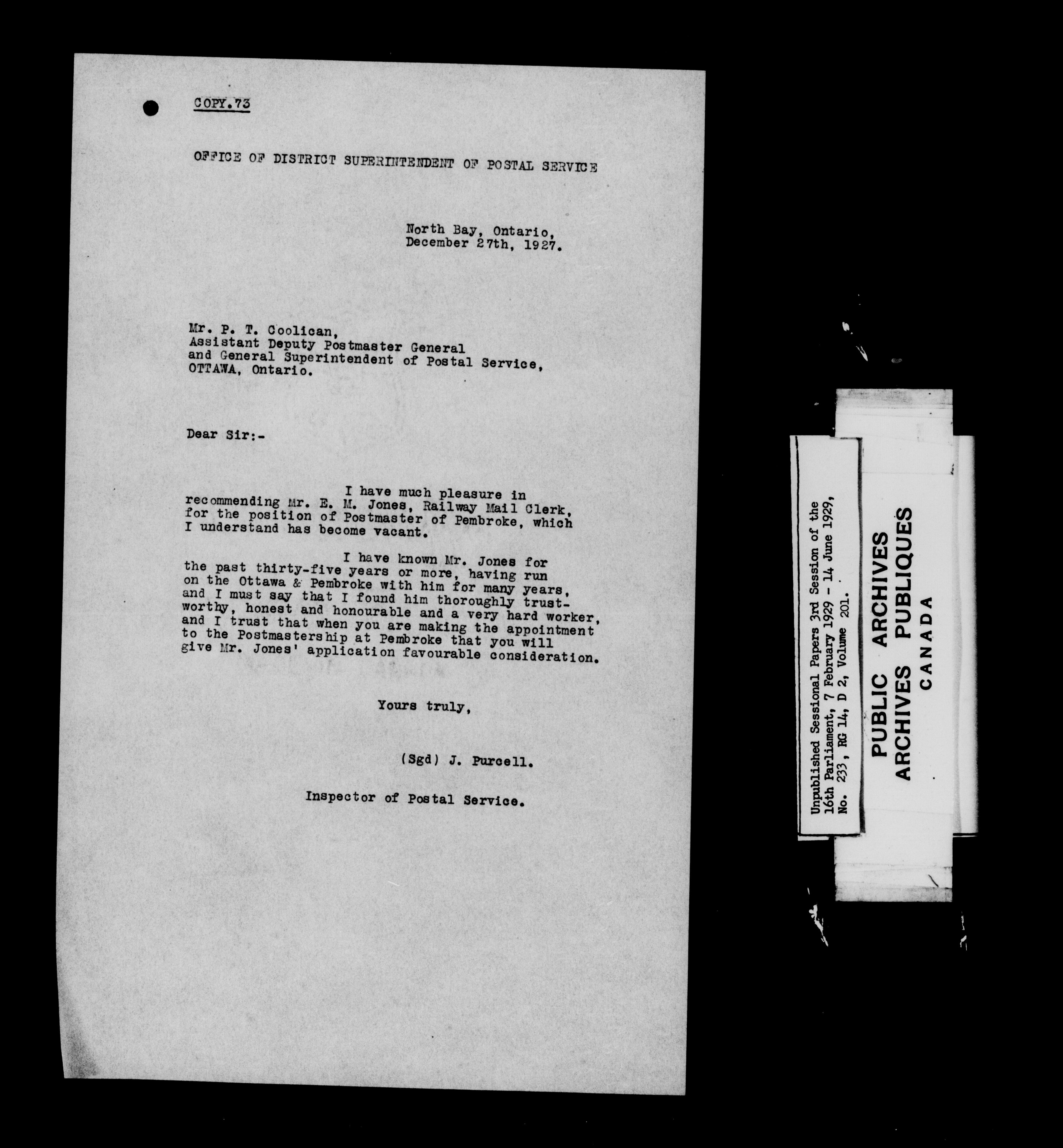 Unpublished sessional papers, 3rd session of the 16th Parliament, 7 February - 14 June 1929 - 7567