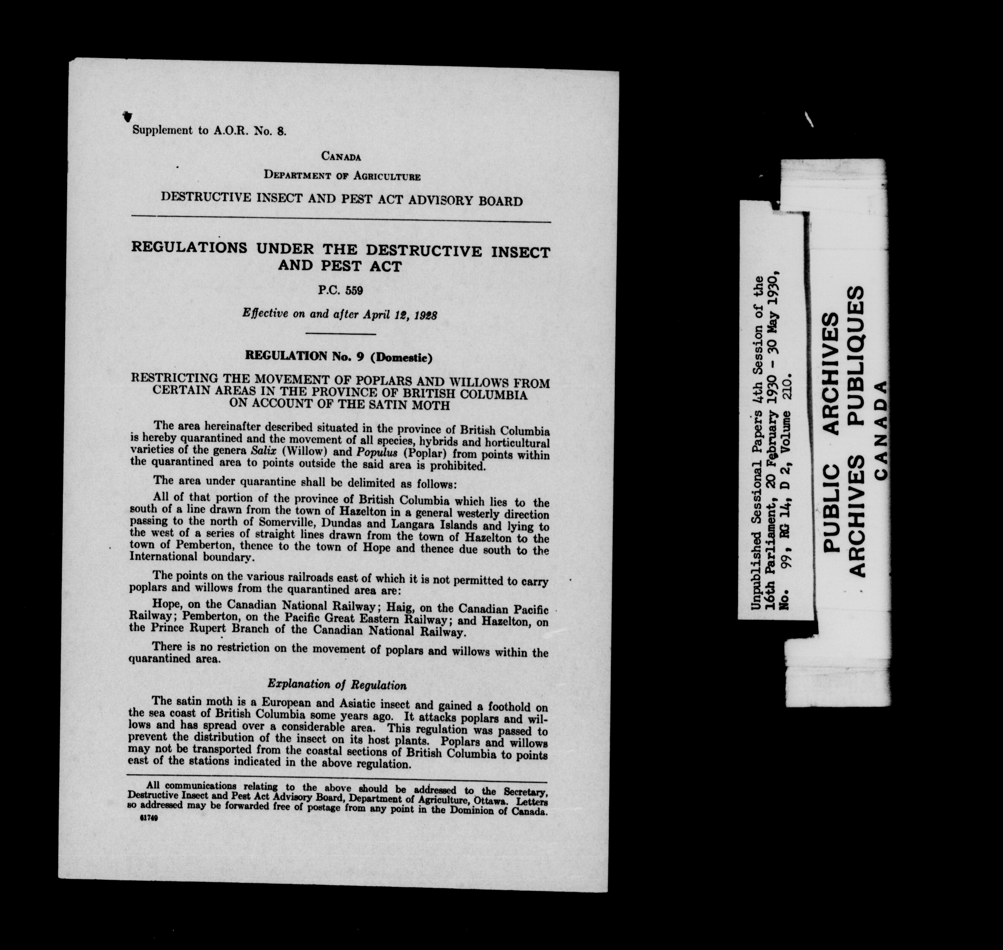 Unpublished sessional papers, 4th session of the 16th Parliament, 20 February - 30 May 1930 - 7570