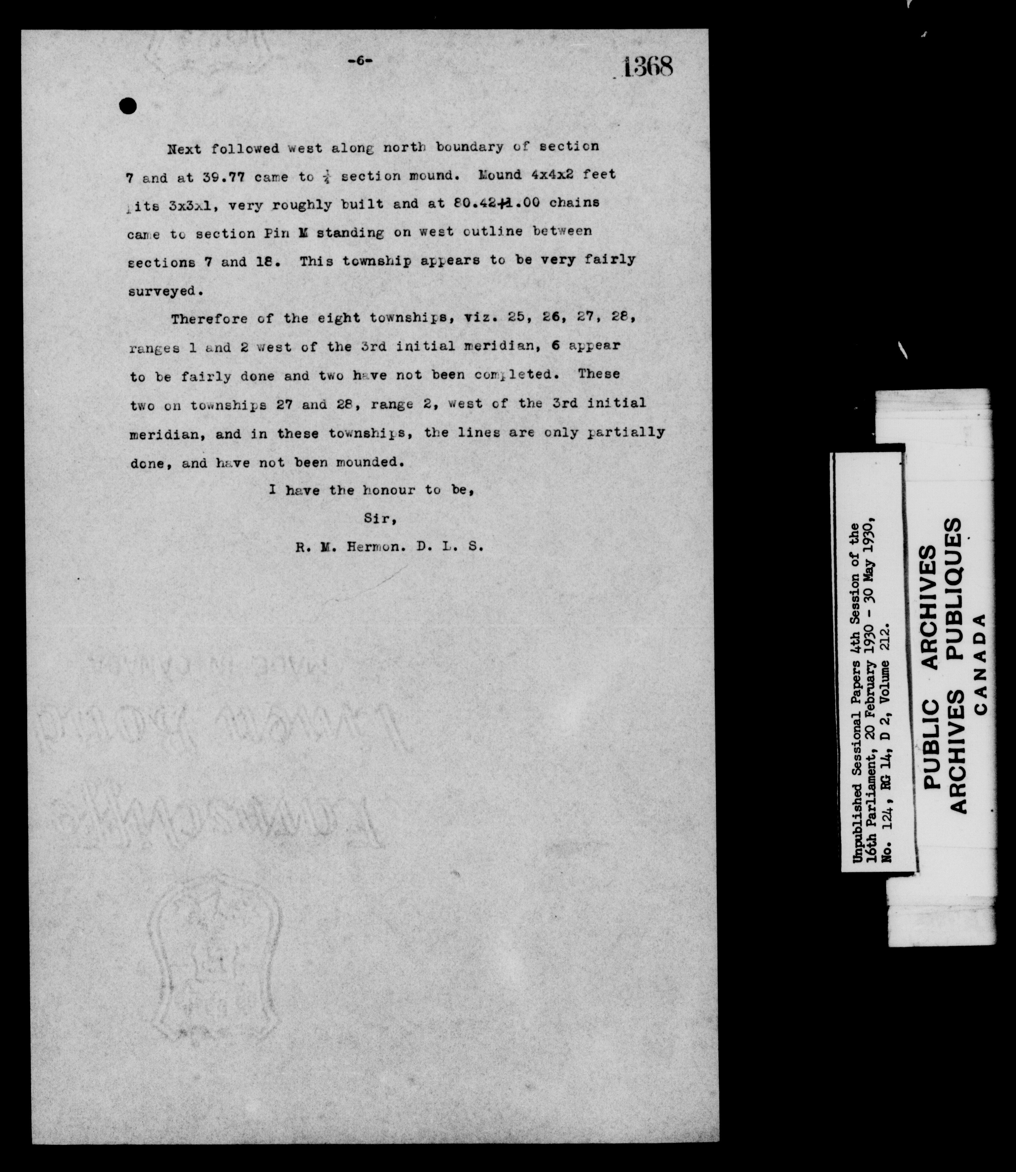 Unpublished sessional papers, 4th session of the 16th Parliament, 20 February - 30 May 1930 - 7571
