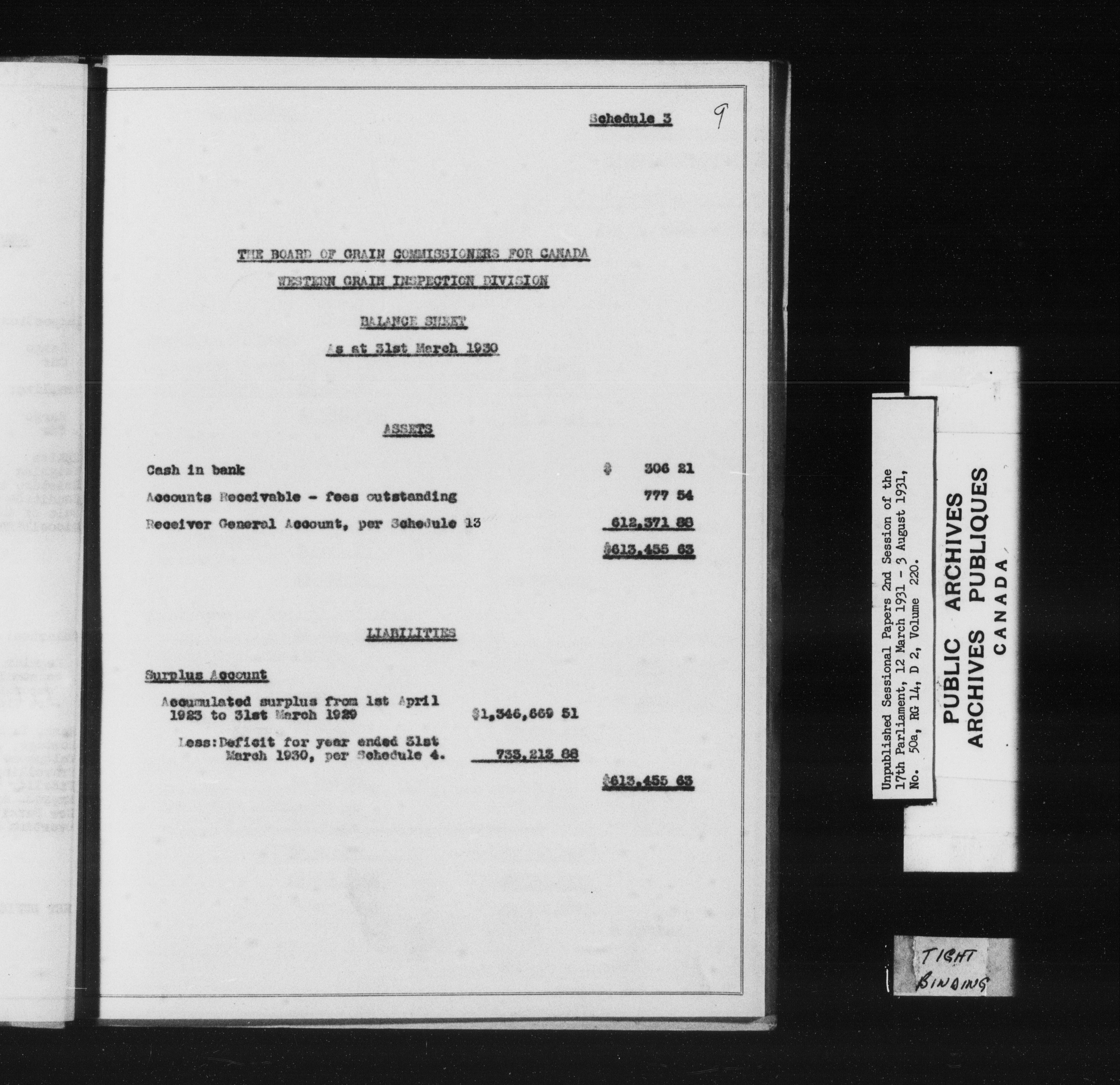 Unpublished sessional papers, 2nd session of the 17th Parliament, 12 March-3 August 1931 - 7575